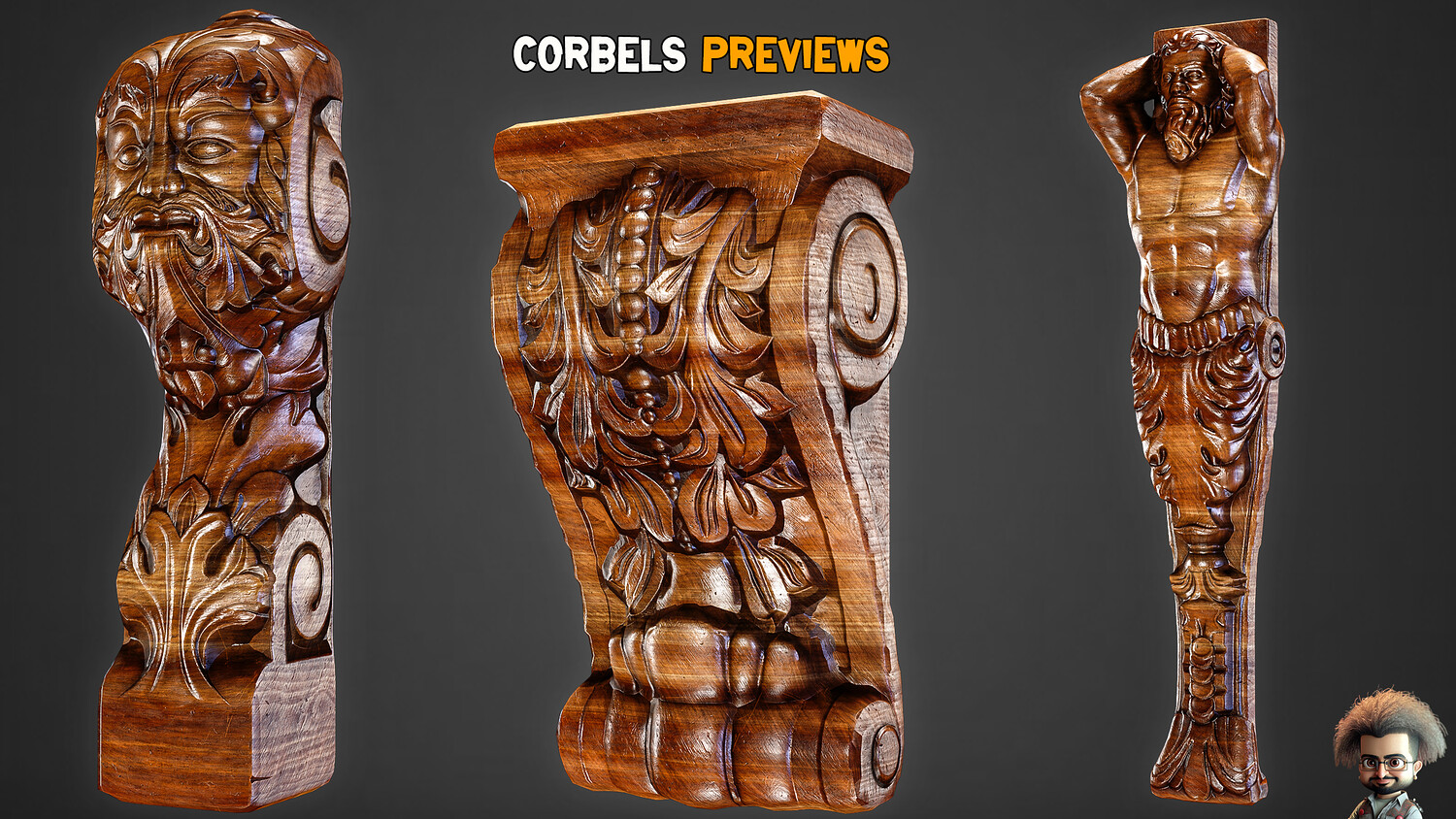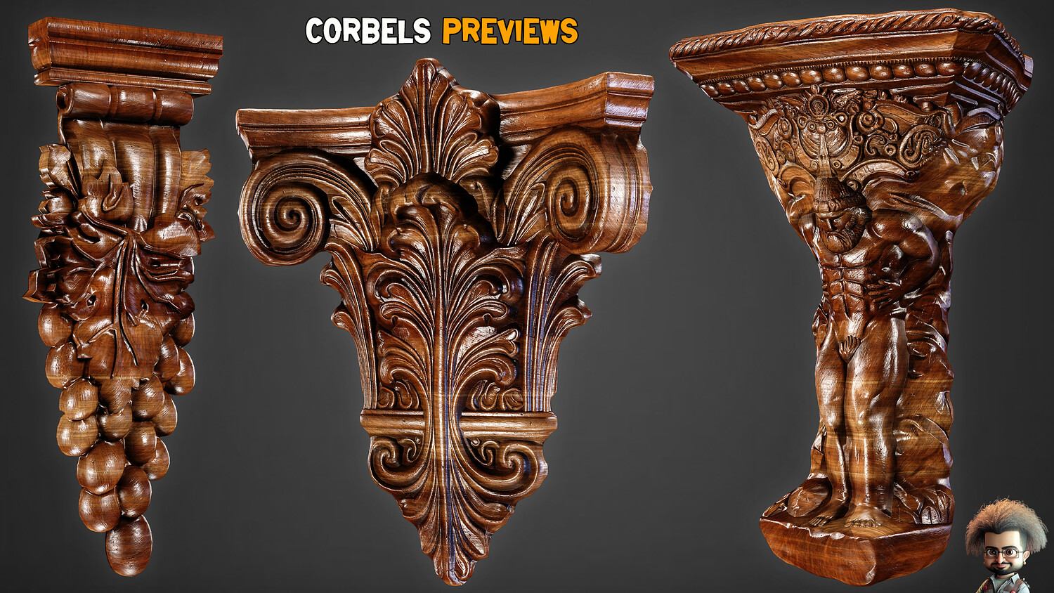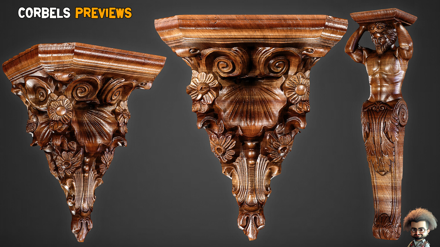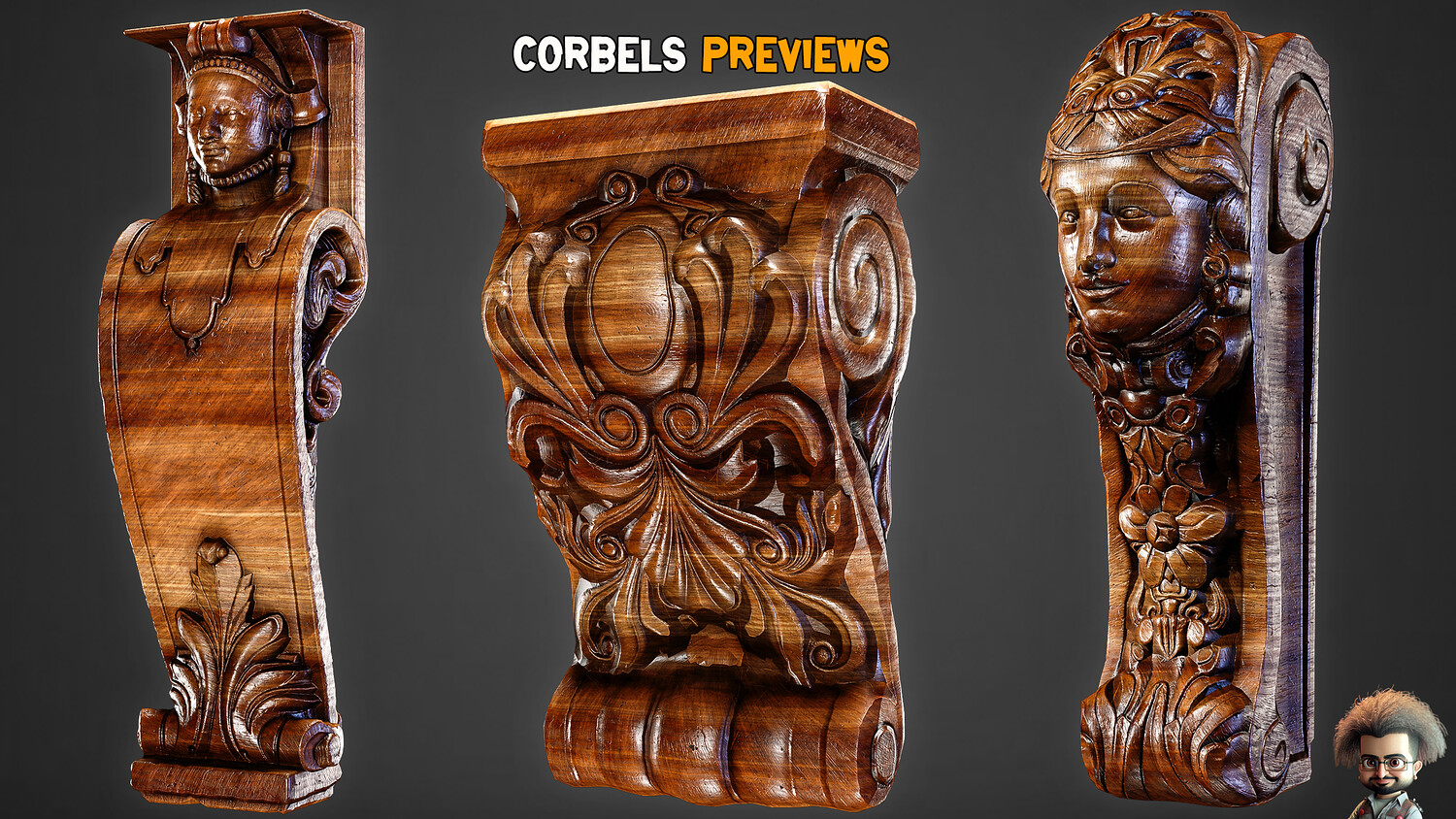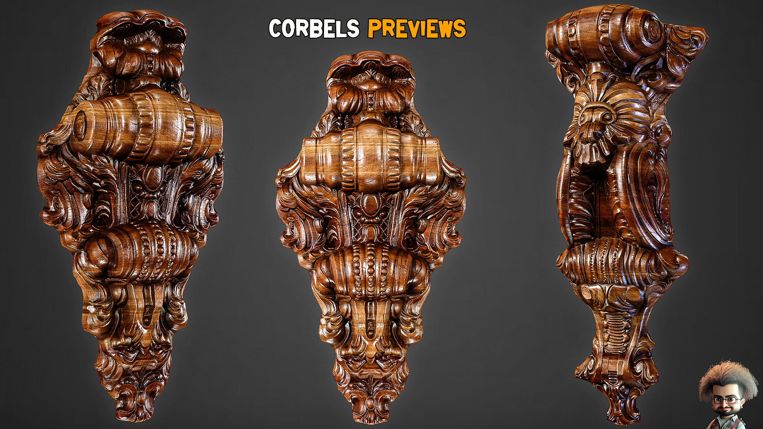 30 Game-Ready Ornamental Corbels + PBR Texture - Vol 54