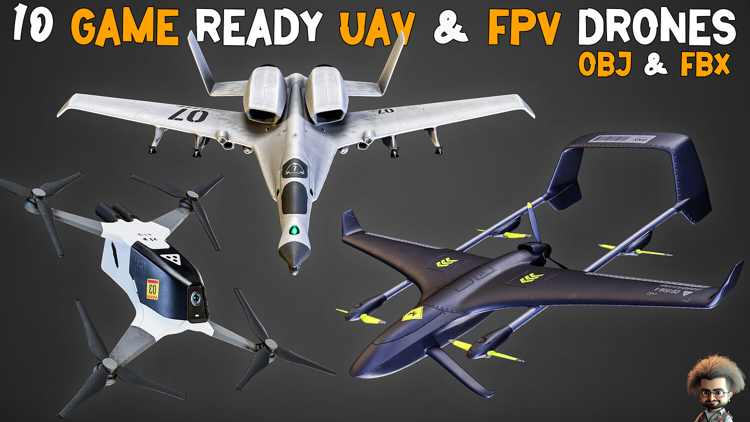 10 Game-Ready UAV & FPV Drones + PBR Texture - Vol 11