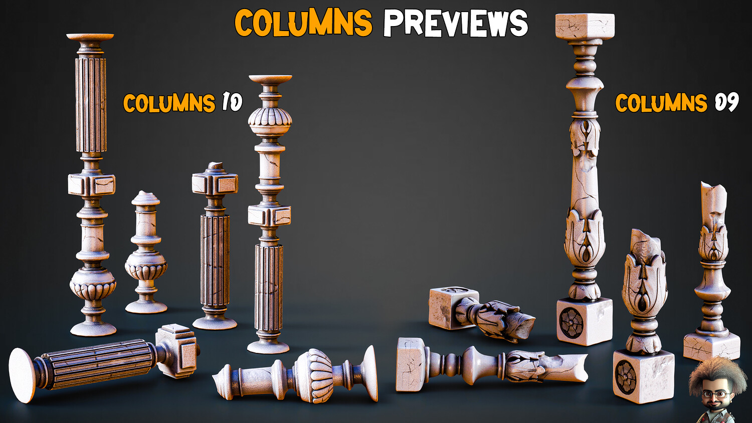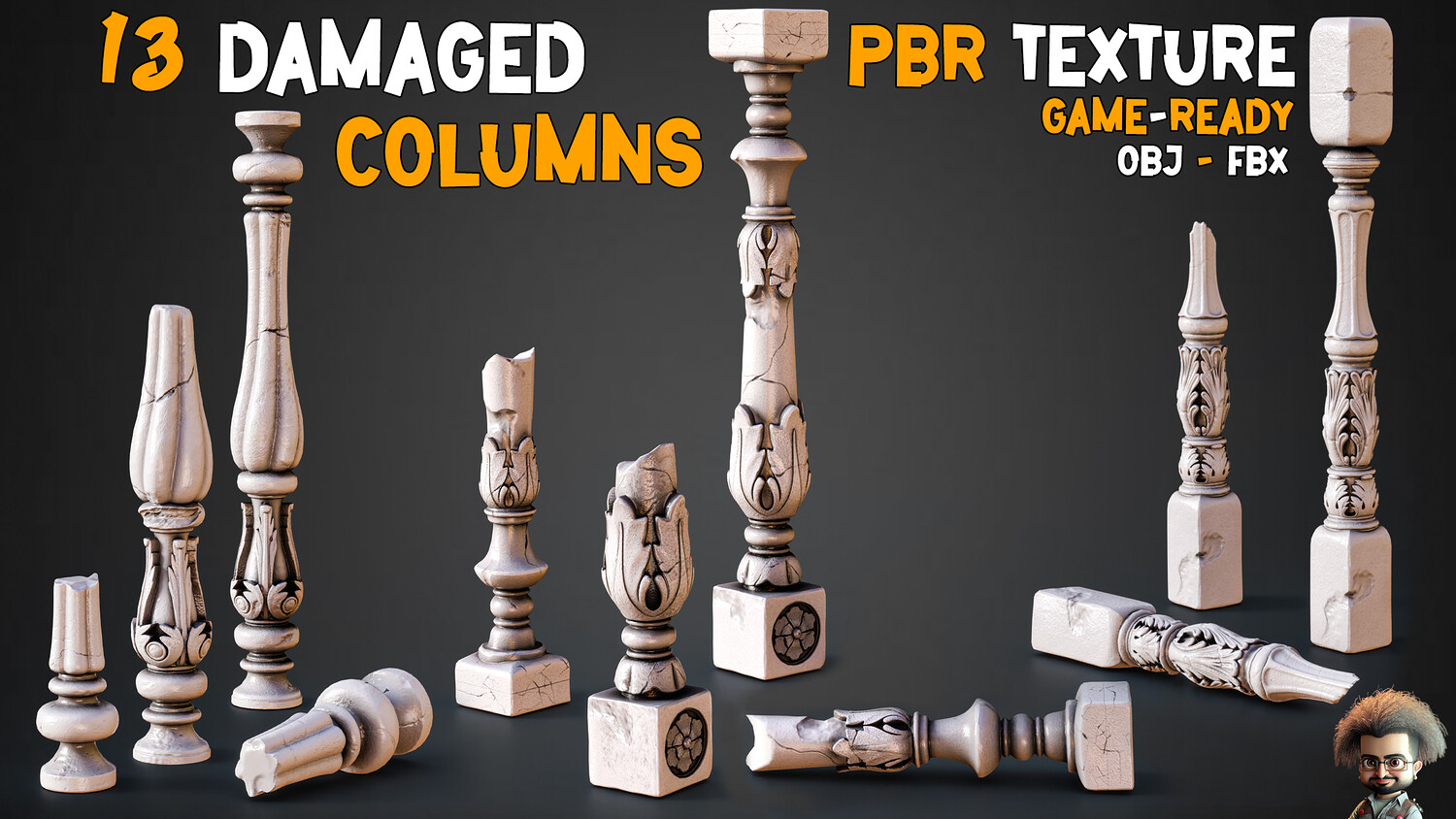 13 Game-Ready Damaged Columns + PBR Texture - Vol 02