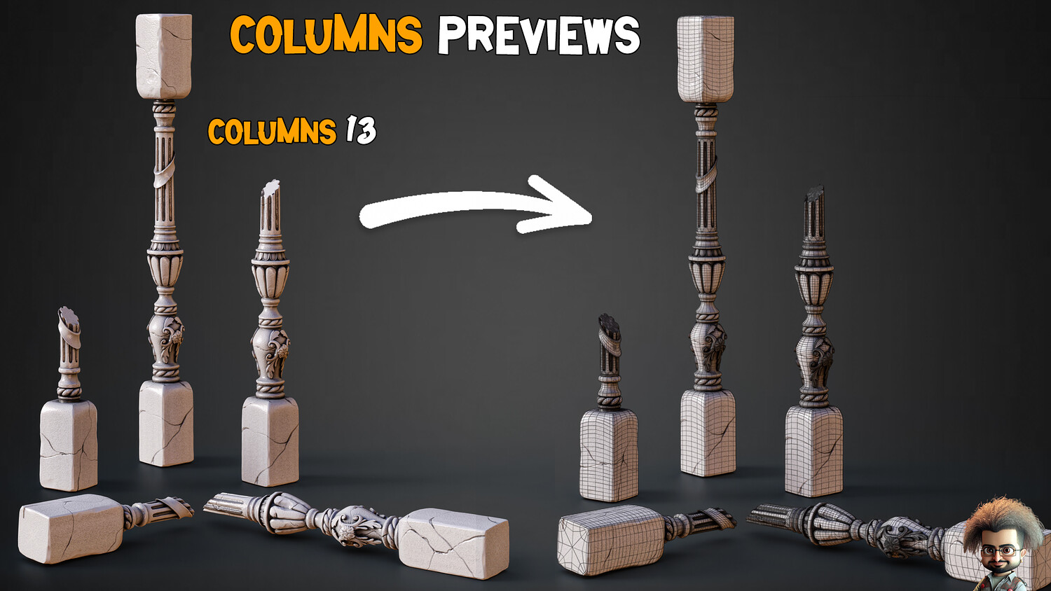 Hey, environment artists and level designers! ๐๏ธ Add age, destruction, and depth to your worlds with this detailed pack of 13 Game-Ready Damaged Columns, built for everything from ancient ruins to war-torn cities and post-apocalyptic scenes.