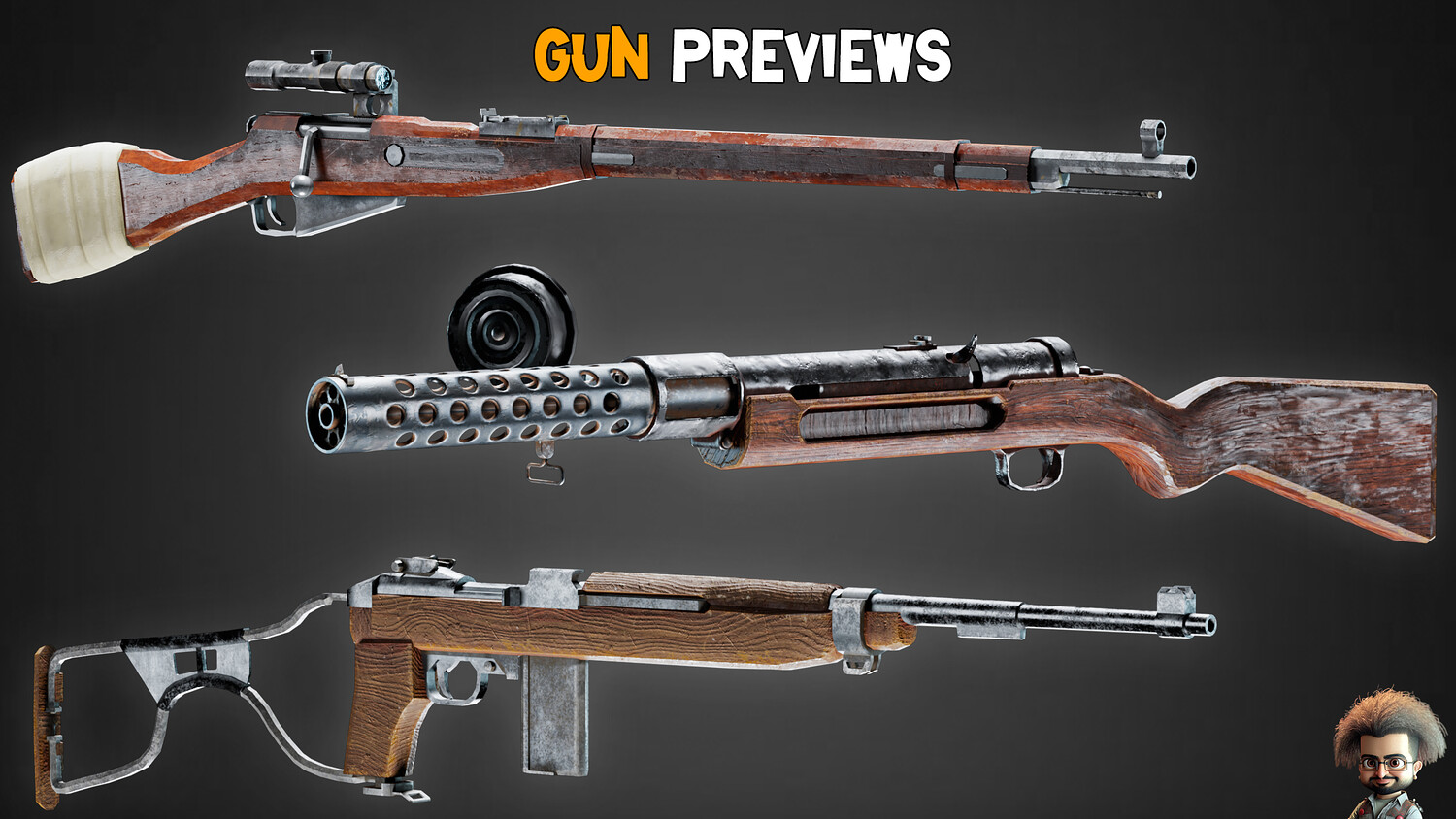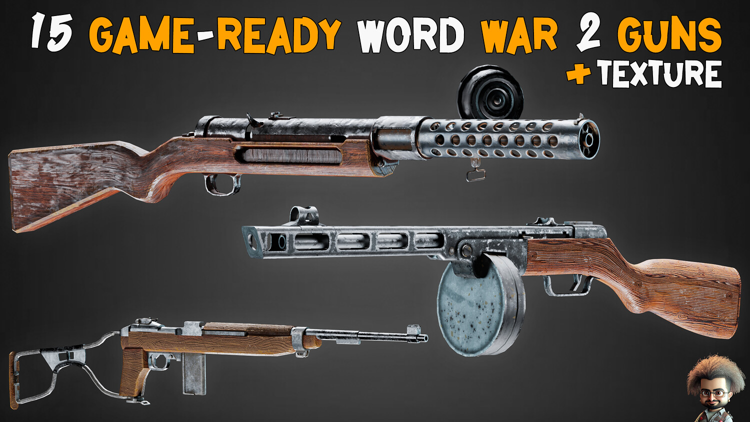 Hey game devs and history enthusiasts! 🎮 Step back into the battlefield with this collection of 15 Game-Ready World War II Guns, carefully modeled and textured to capture the authentic look and feel of the era.