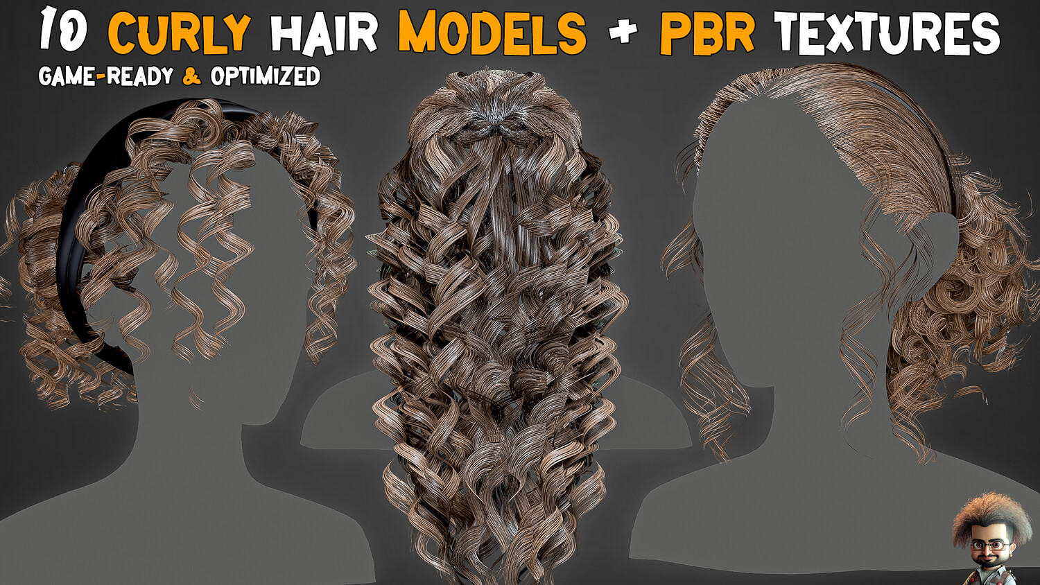 10 Curly Hair Model + PBR Texture - Vol 07