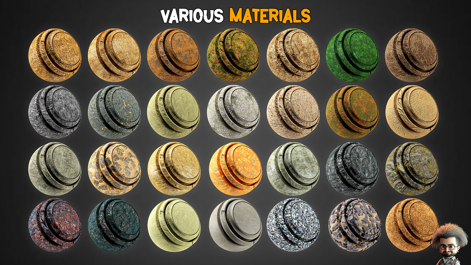 This powerful pack includes 30 high-quality ground smart materials designed to bring realism and variety to any natural or urban surface. Whether youโre crafting wilderness trails, post-apocalyptic wastelands, or stylized gardens, this collection delivers ready-to-use PBR materials with just the right touch of detail