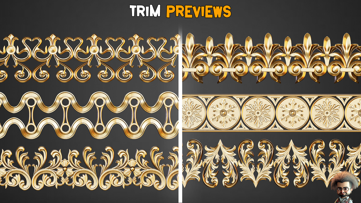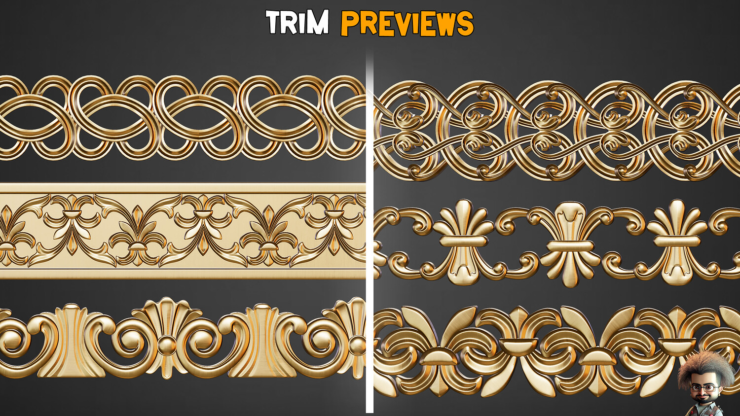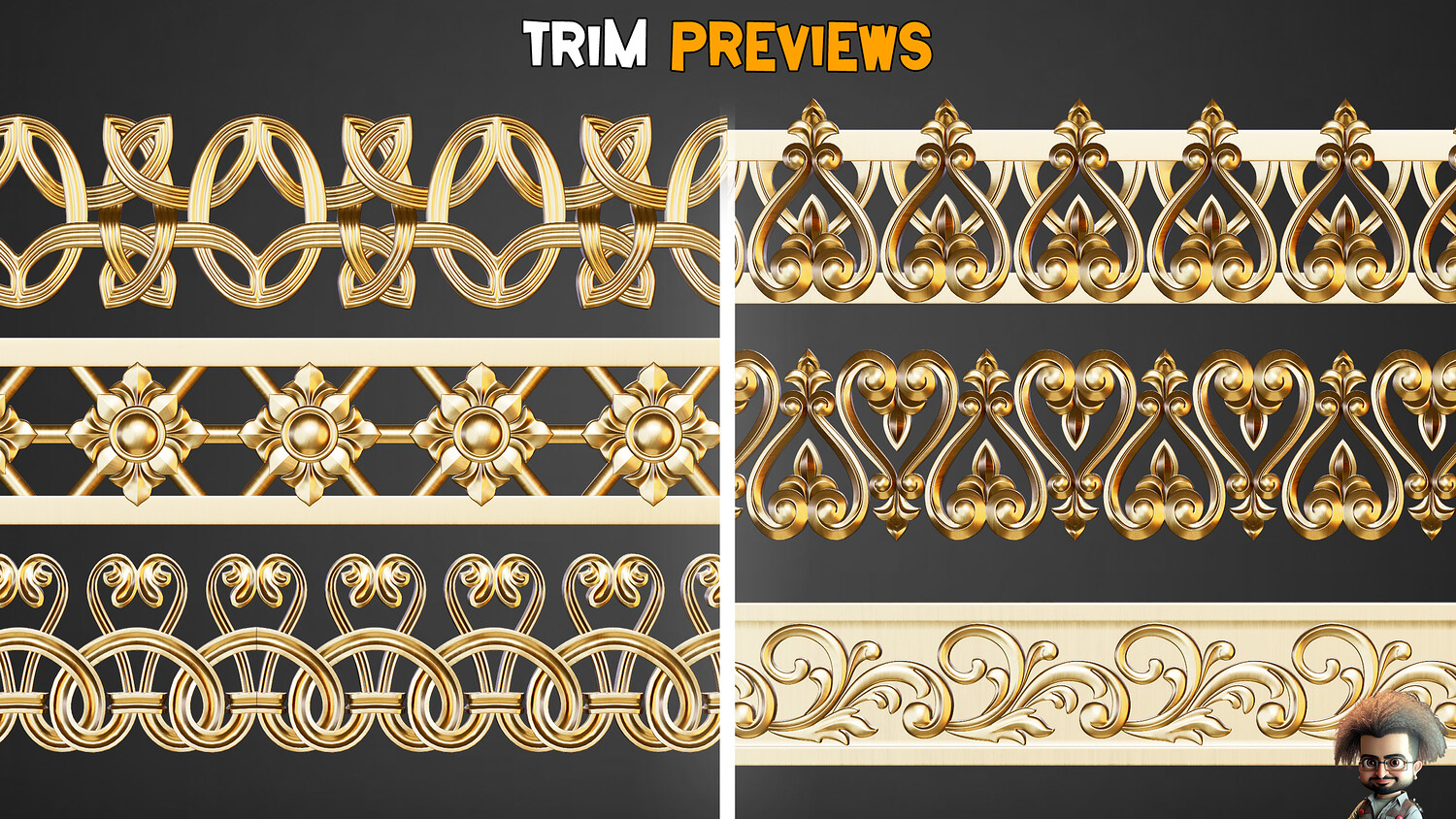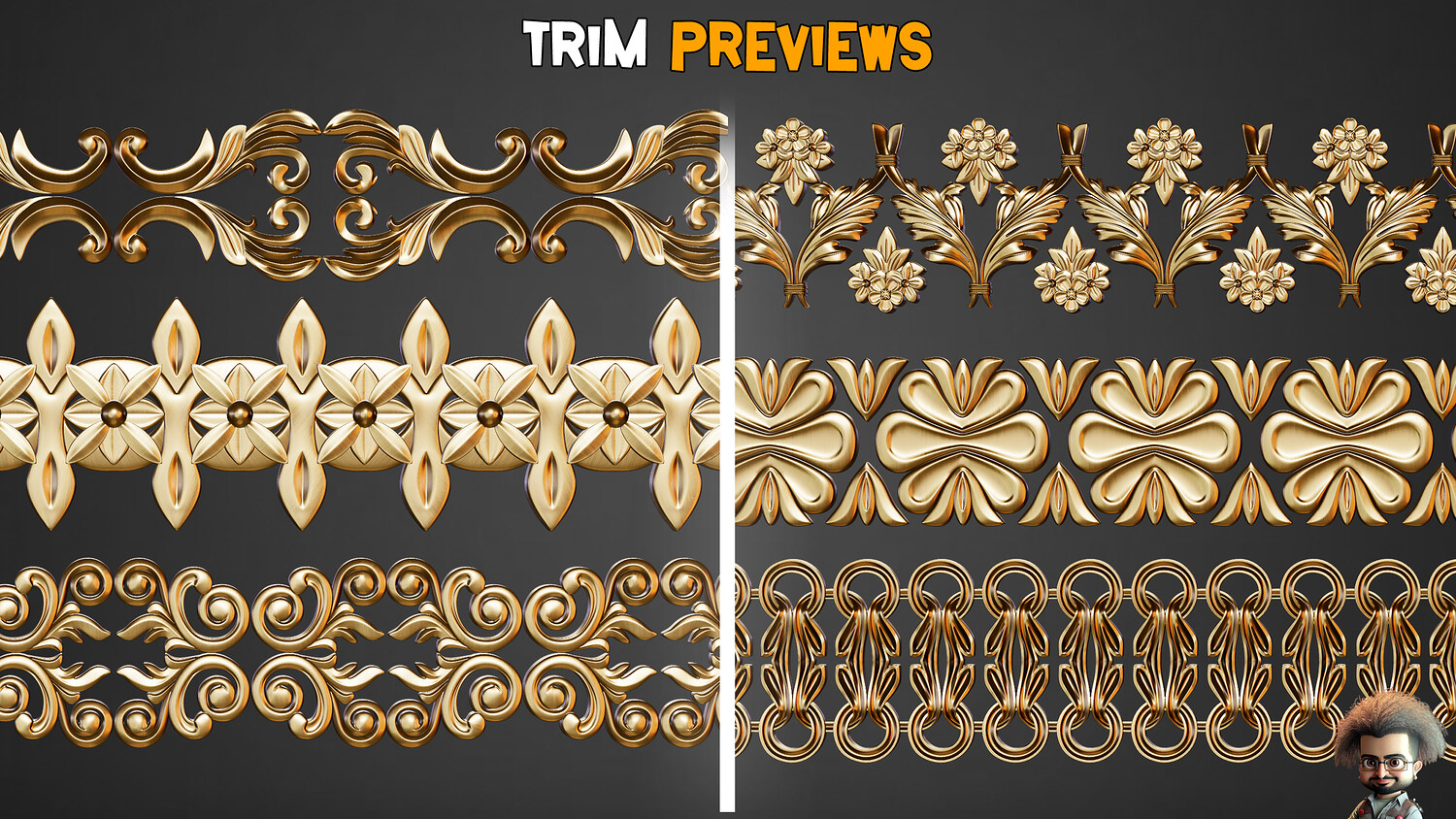 Whether you're working on royal architecture, ceremonial armour, mystical props, or luxury furniture, this pack delivers instantly usable, high-quality trims to elevate your designs to the next level.
