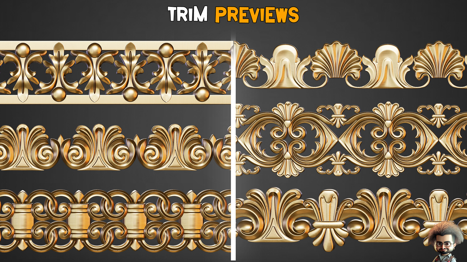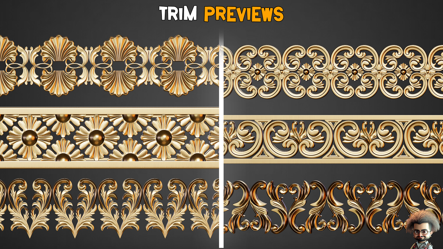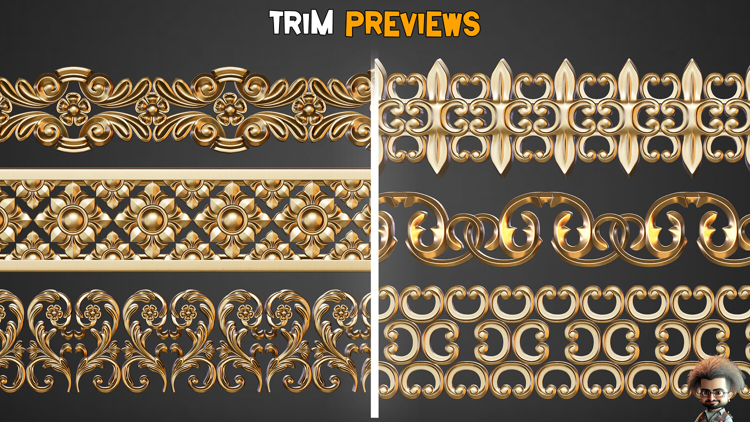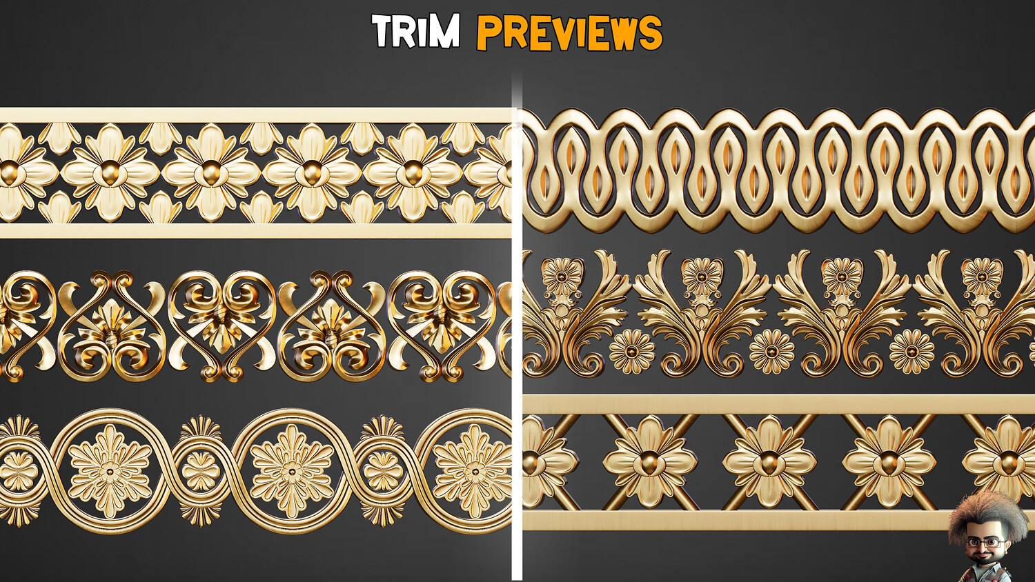 Whether you're working on royal architecture, ceremonial armour, mystical props, or luxury furniture, this pack delivers instantly usable, high-quality trims to elevate your designs to the next level.