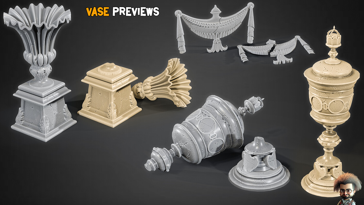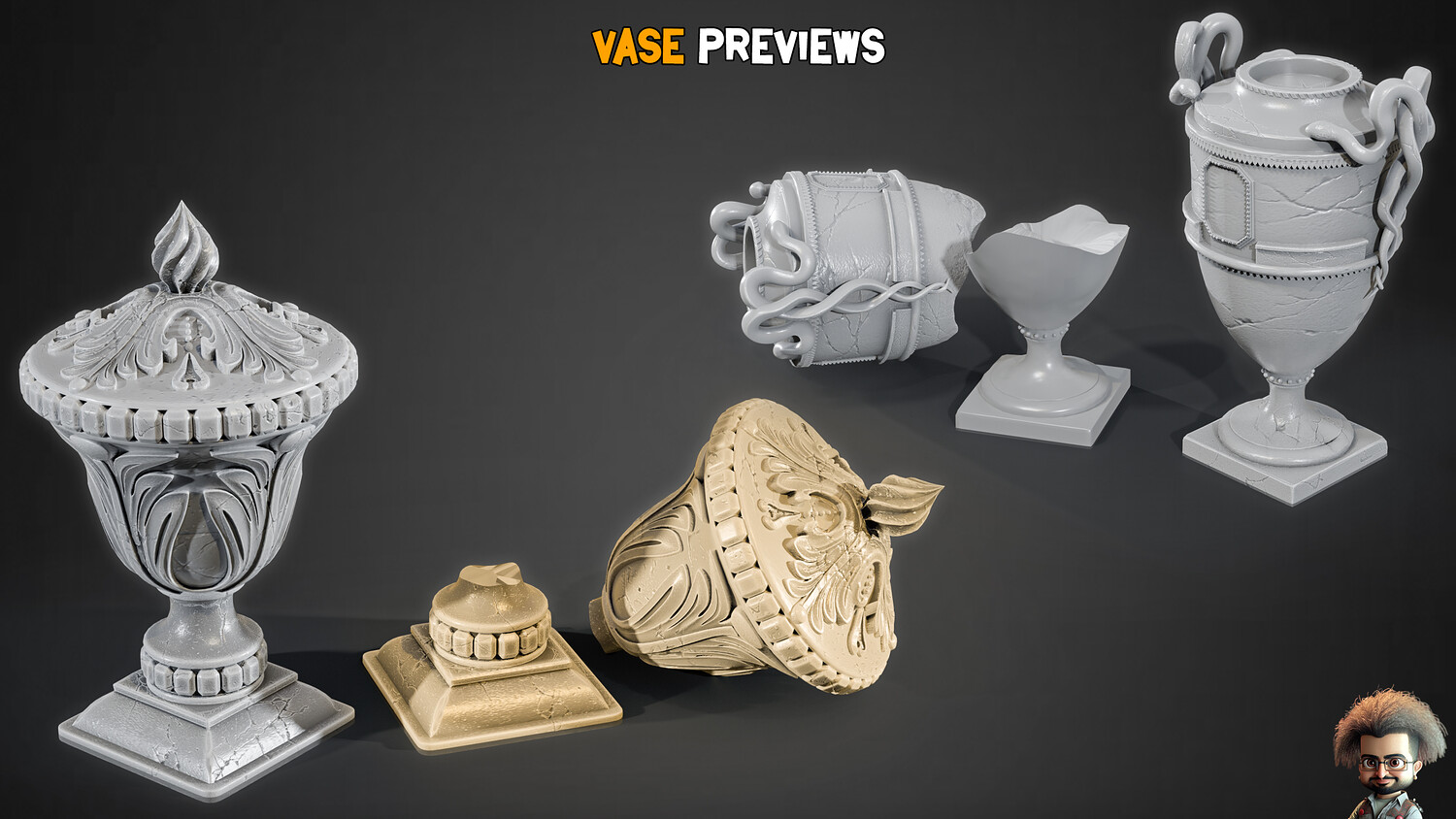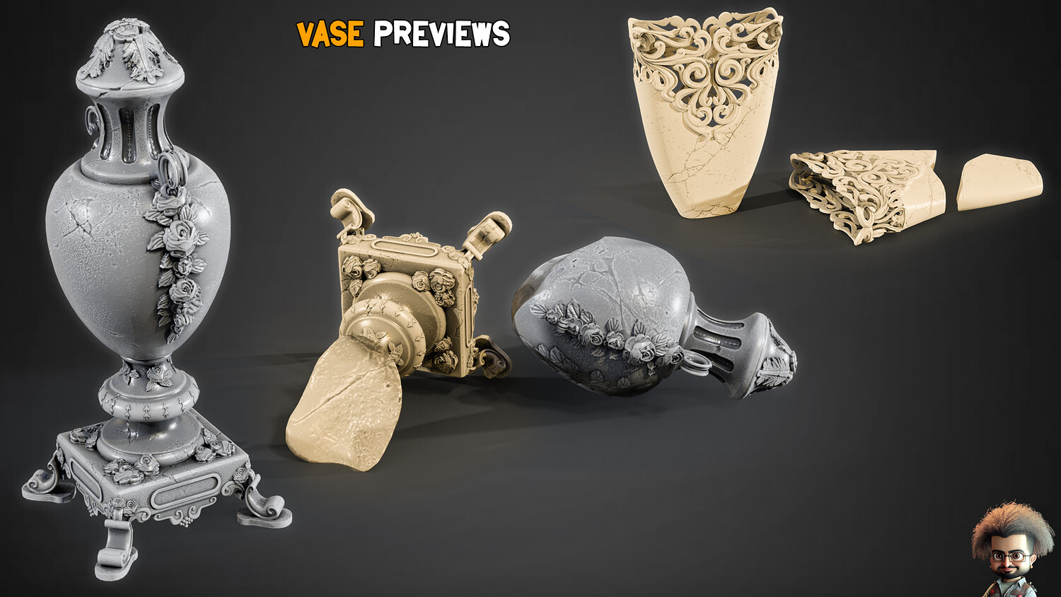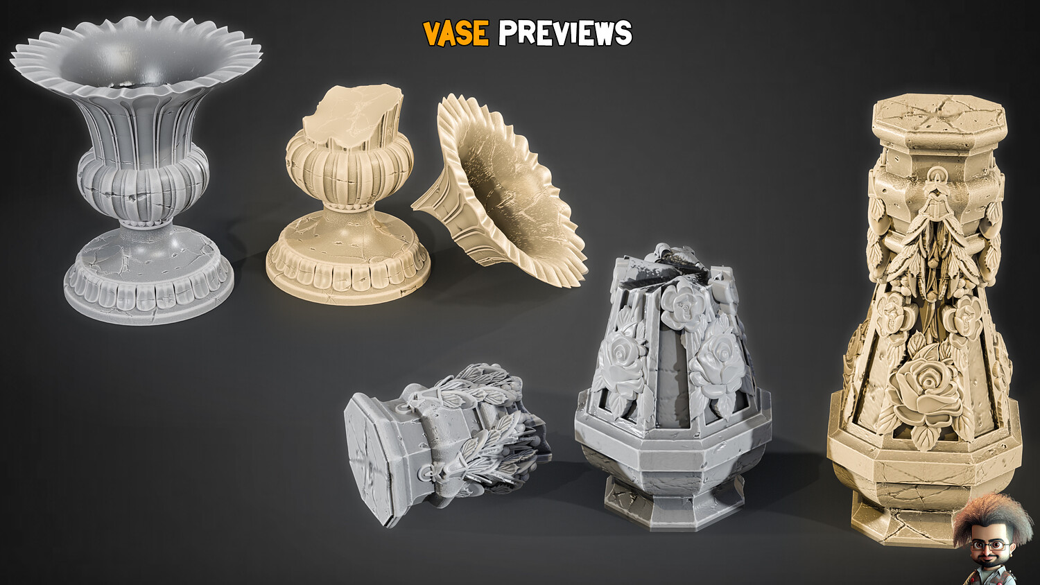 🏺 15 Unique Damaged Vase Models – Each one with a distinct silhouette and destruction style 🧠 LowPoly & Game-Ready – Designed for fast performance with no compromise on detail 🖼 4K PBR Textures – Including Base Color, Normal, Roughness, AO & Metallic maps 📁 Formats Included: FBX, OBJ, BLEND 🔧 UV Unwrapped – Clean, customizable, and efficient