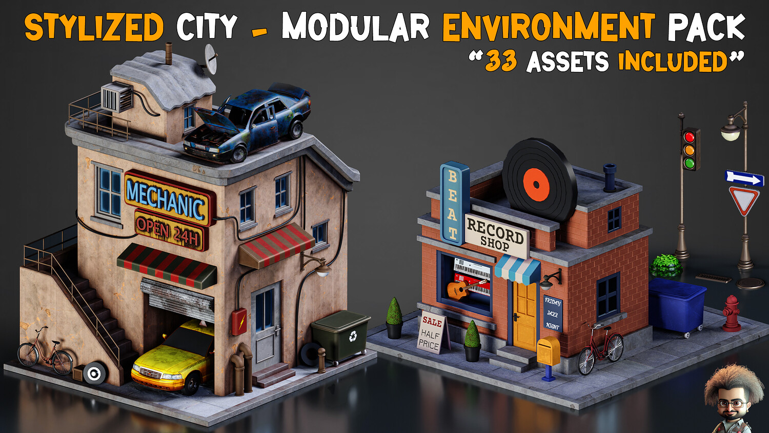 Hey creators and environment artists! 🎨 Welcome to Stylized City – Vol. 02, a complete Modular Environment Pack featuring 33 handcrafted stylized assets designed to help you build your own vibrant and colorful 3D city.