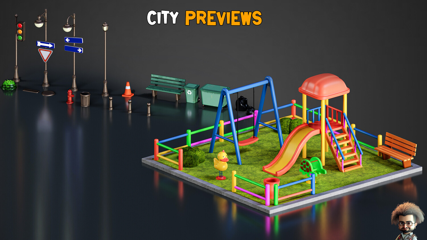 🏙️ 33 Modular Stylized Assets — houses, streets, props, and public buildings 🧱 Game-Ready & Optimized — clean meshes, low poly, and ready for real-time engines 🎨 Stylized Materials & 4K PBR Textures — colorful and performance-friendly 📁 Formats: BLEND, FBX, OBJ 📂 UV Unwrapped & Editable — fully customizable for your needs 📄 Preview Catalog (PDF) — quick visual overview of every element