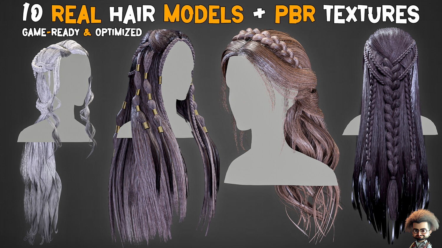 10 Real Hair Models + PBR Textures - Vol 03 |Game-Ready & Optimized|
