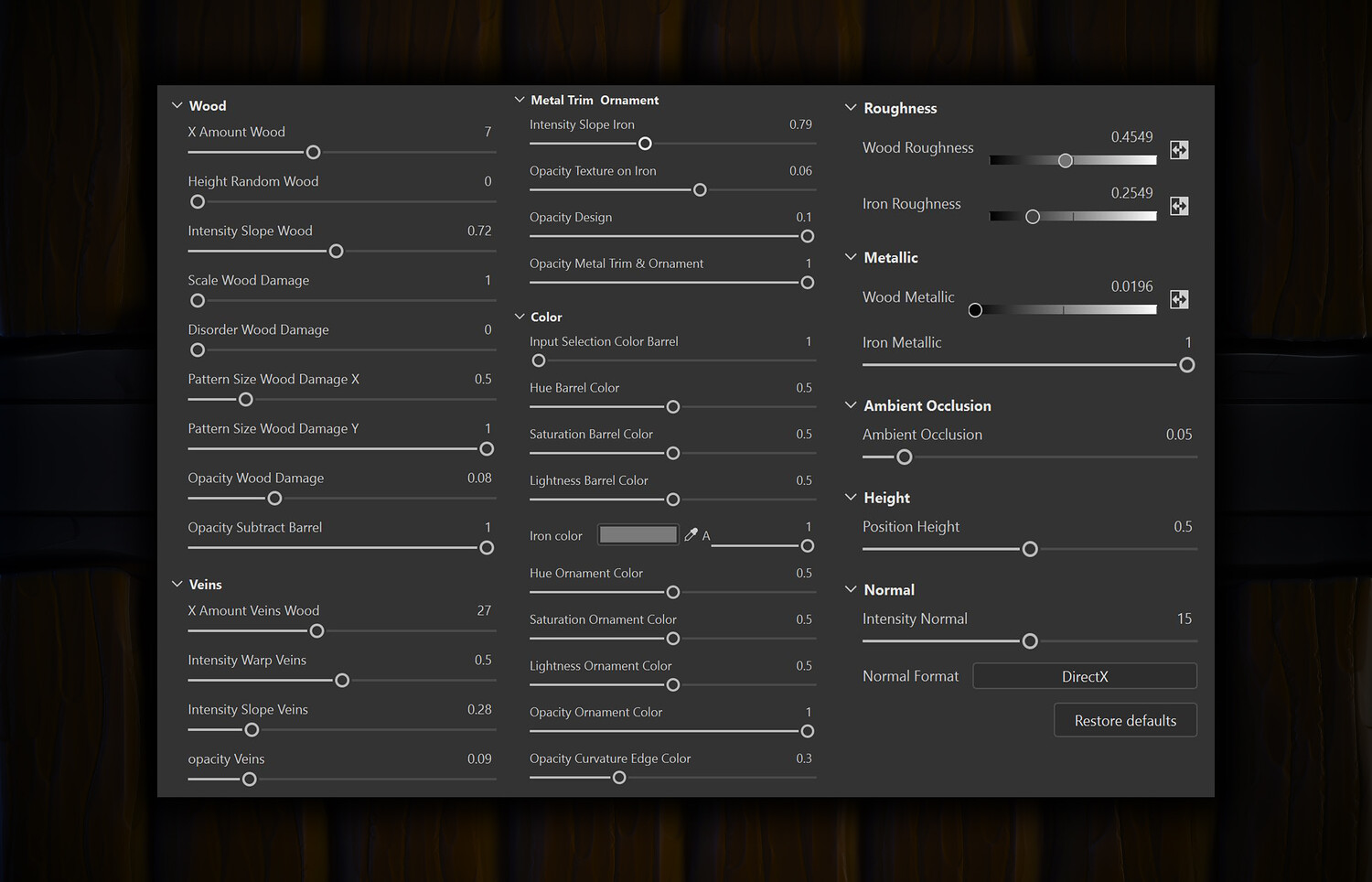 Contains map: ambientOcclusion basecolor diffuse glossiness height metallic normal roughness specular SBsar File Wood Barrel (Stylized) - VOL 10 - SBsar & Maps is designed in a real way and can be used for all kinds of games and animations. For use in all rendering and game engines Contains SBS and SBSAR files with the ability to change all kinds of material parameters in the substance painter software (contains a photo of the parameters that can be changed) This material Can be used for barrels, etc. in games, animations, advertising and architectural projects. Naming the clarity of all changeable items