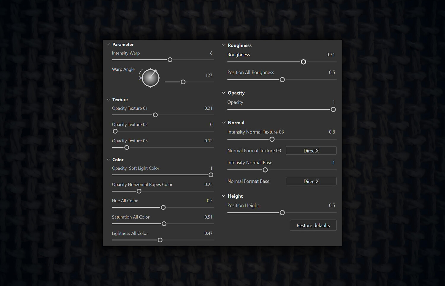 Fabric (Burlap) - Vol 09 - Maps - SBsar is designed in a real way and can be used for all kinds of games and animations. For use in all rendering and game engines SBSAR files with the ability to change all kinds of material parameters in the substance painter software (contains a photo of the parameters that can be changed) This material Can be used for realistic environments, Burlap is a durable, versatile fabric often used in various applications, thanks to its natural texture and sturdy structure. It is ideal for creating rustic, eco-friendly designs. Perfect for upholstery, bags, and home décor, this fabric adds a tactile, organic feel to any project. It’s also commonly used in crafting, gardening, and packaging. With its breathable qualities, burlap is both practical and stylish, offering a sustainable option for many creative endeavors for Game & Animation.