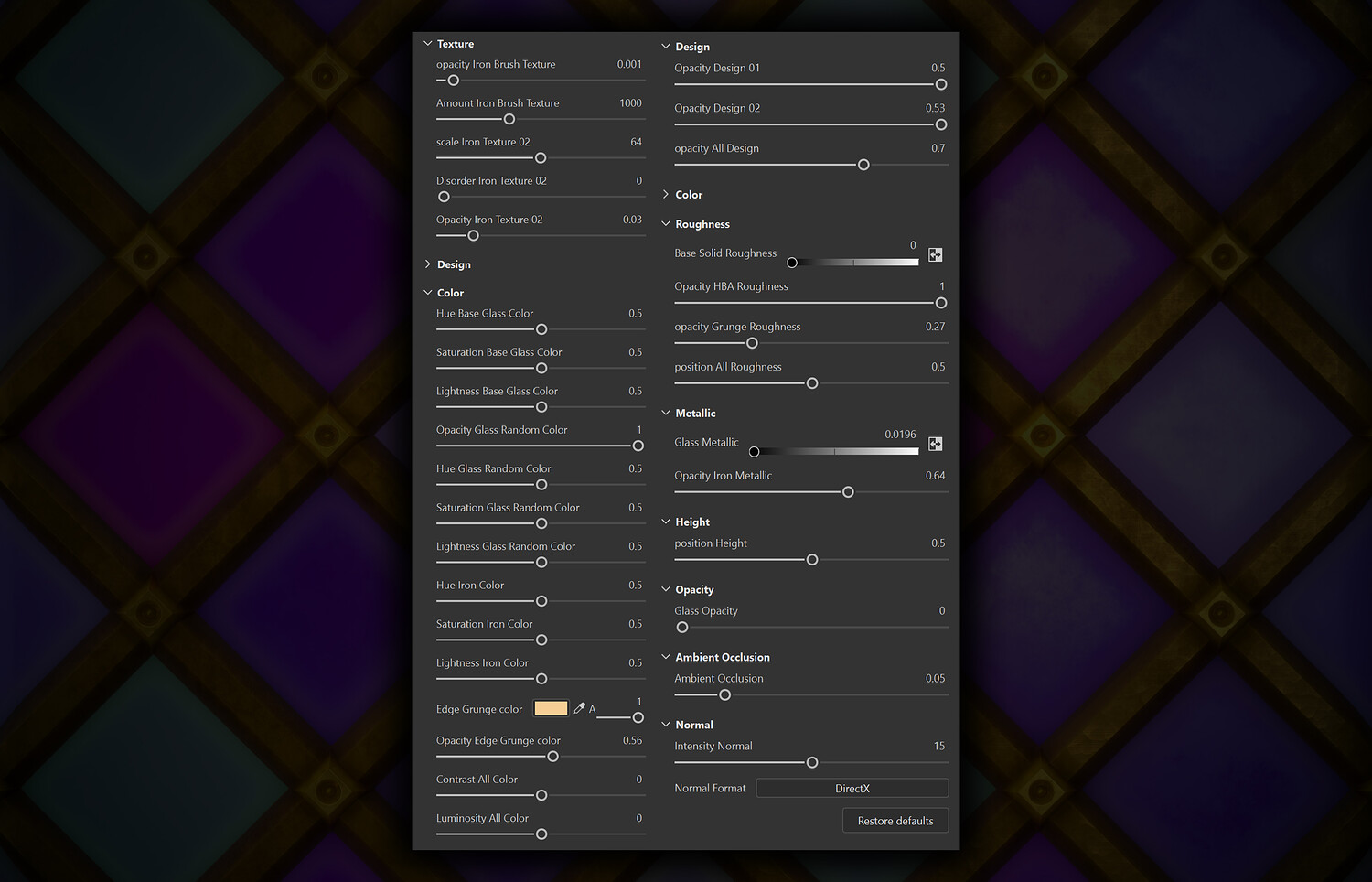 It has a large number of different parameters for different changes, including color, texture, shape, etc. 100% Design in Substance Designer