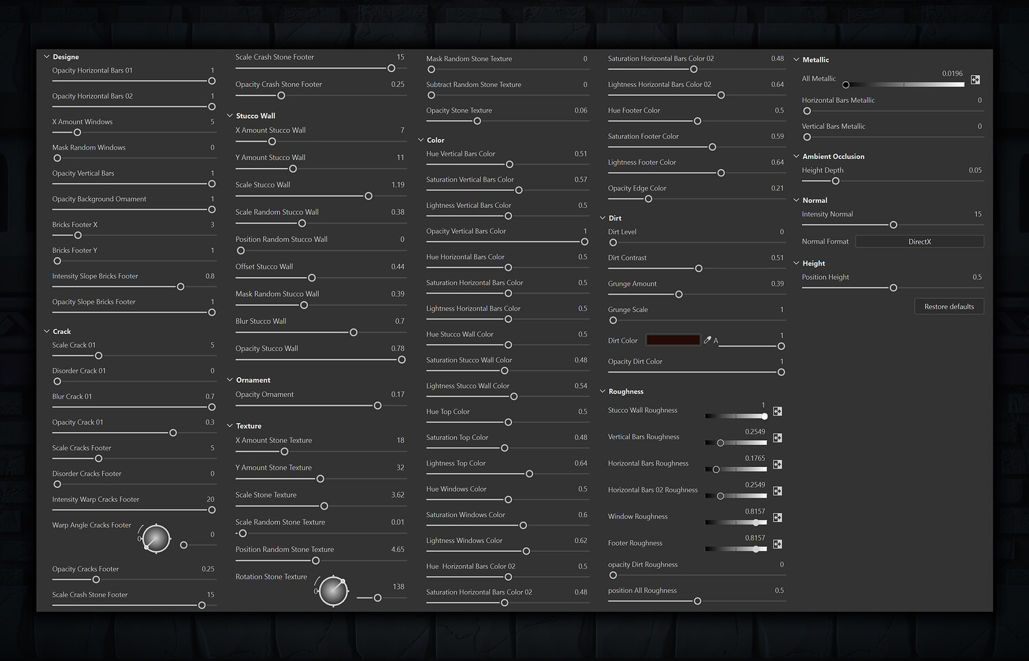 With the ability to change all settings and parameters in the SBsar file With excellent ability to change all kinds of settings in the Sbsar file: Because there were many parameters that can be changed, all the parameters are placed in the photo