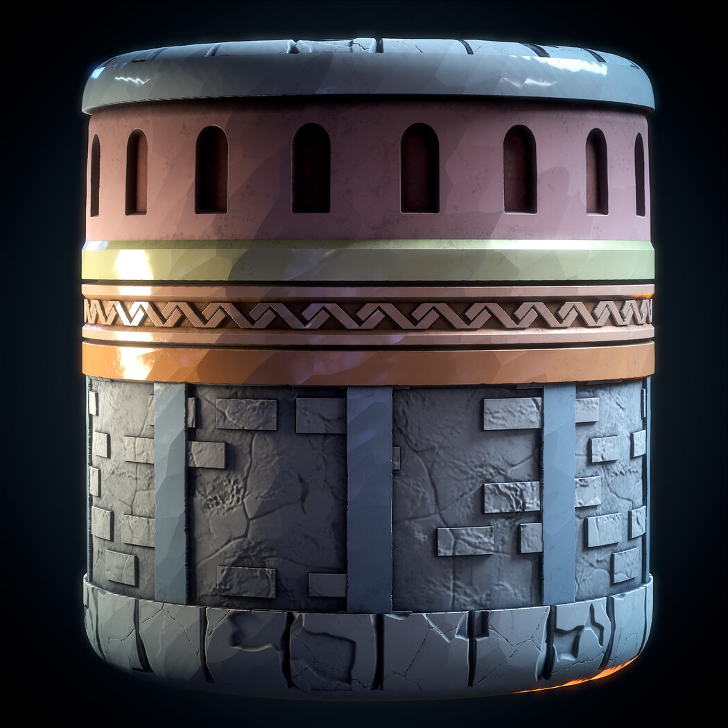 Wall (Stylized) - VOL 10 - SBsar & Maps is designed in a Stylized way and can be used for all kinds of games and animations. For use in all rendering and game engines SBSAR files with the ability to change all kinds of material parameters in the substance painter software (contains a photo of the parameters that can be changed) This material can be used for all kinds of ancient and old walls, old temples, traditional houses, castles, etc. in games, animations, advertising and architectural projects. Naming the clarity of all changeable items