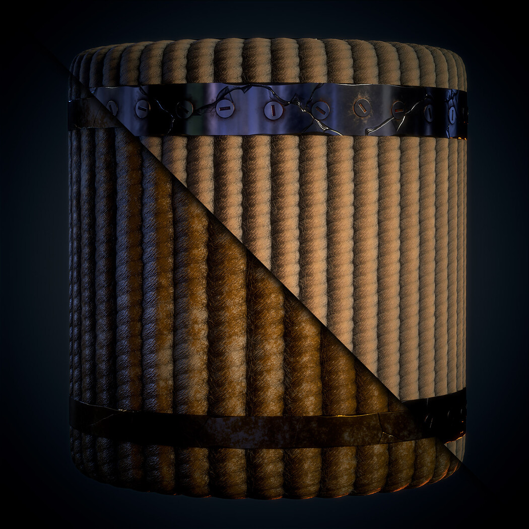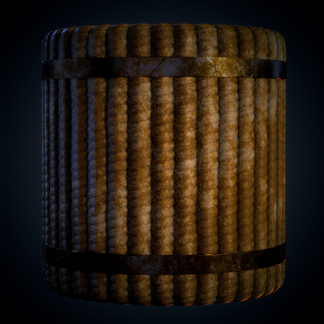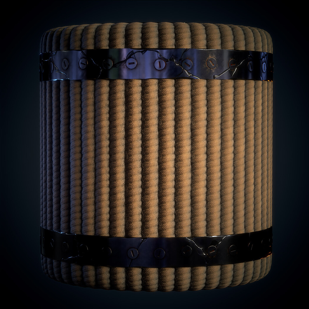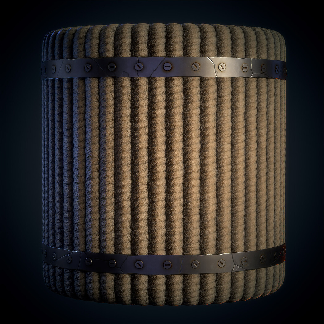 SBsar File Rope with Metal Trims - Vol 01 - SBsar & Maps is designed in a real way and can be used for all kinds of games and animations. For use in all rendering and game engines SBSAR files with the ability to change all kinds of material parameters in the substance painter software (contains a photo of the parameters that can be changed) This material Can be used for all types of Durable, realistic, rope, texture, with, detailed, metal, trims, perfect, for, 3D, modeling, and, game, environments, suitable, for, use, in, industrial, design, and, architectural, visualization.