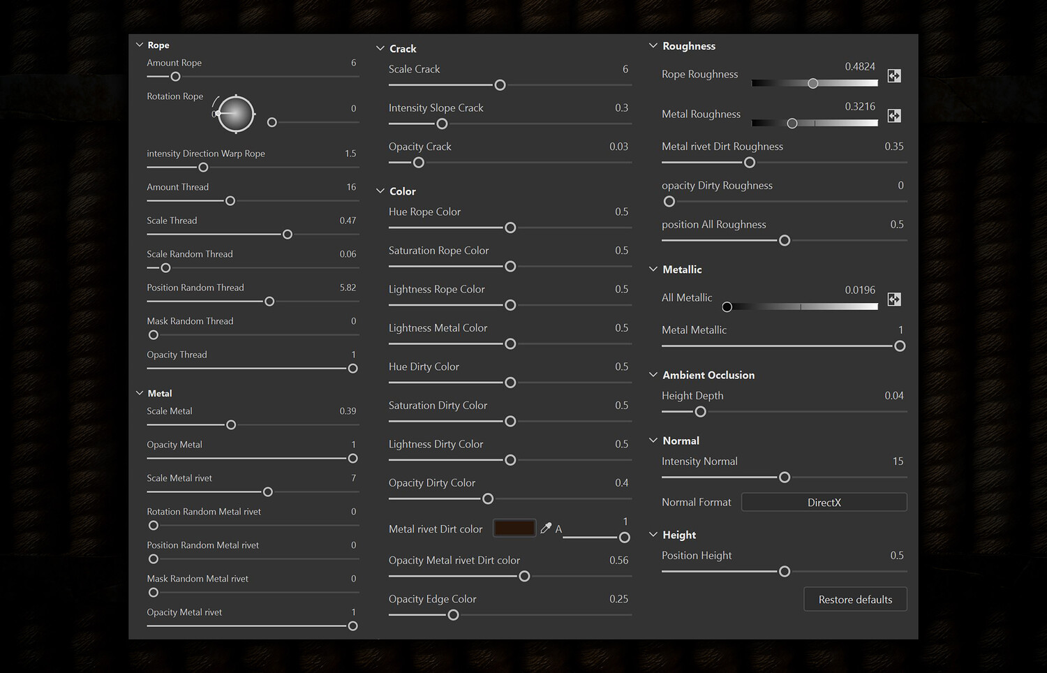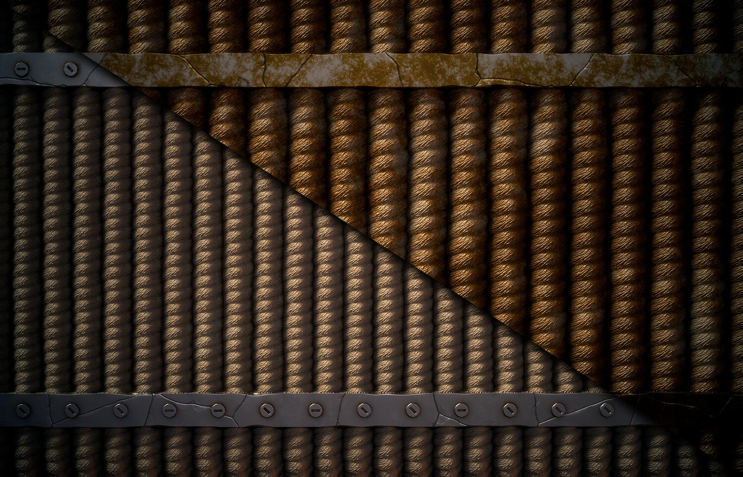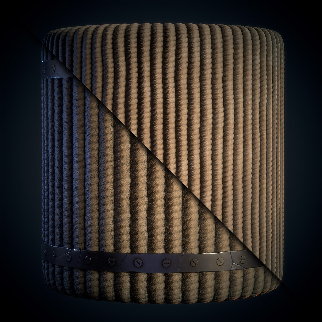 SBsar File Rope with Metal Trims - Vol 01 - SBsar & Maps is designed in a real way and can be used for all kinds of games and animations. For use in all rendering and game engines SBSAR files with the ability to change all kinds of material parameters in the substance painter software (contains a photo of the parameters that can be changed) This material Can be used for all types of Durable, realistic, rope, texture, with, detailed, metal, trims, perfect, for, 3D, modeling, and, game, environments, suitable, for, use, in, industrial, design, and, architectural, visualization.