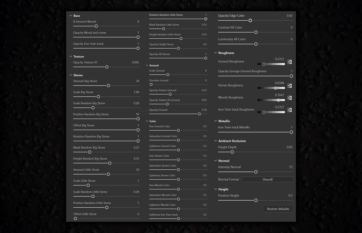 SBsar File Train Tracks (Stylized) - VOL 01 - SBsar & Maps is designed in a real way and can be used for all kinds of games and animations. For use in all rendering and game engines Contains SBSAR files with the ability to change all kinds of material parameters in the substance painter software (contains a photo of the parameters that can be changed) This materials Can be used on train tracks, etc. in games, animations, advertising projects and architecture. Naming the clarity of all changeable items