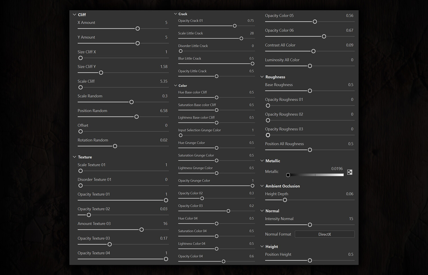 With the ability to change all settings and parameters in the file With excellent ability to change all kinds of settings in the Sbsar file: Because there were many parameters that can be changed, all the parameters are placed in the photo