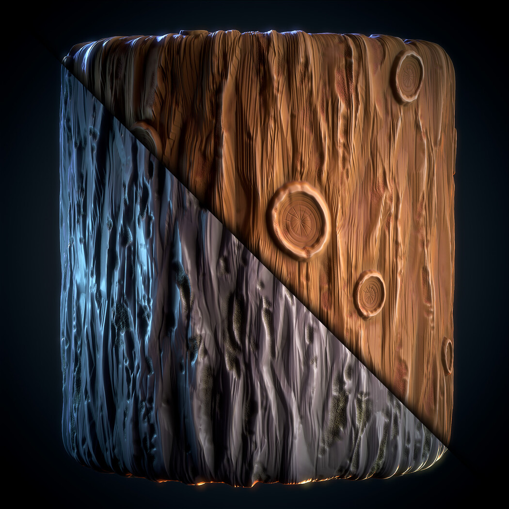 Tree Bark (Stylized) - VOL 08 - SBsar & Maps is designed in a real way and can be used for all kinds of games and animations. For use in all rendering and game engines SBSAR files with the ability to change all kinds of material parameters in the substance painter software (contains a photo of the parameters that can be changed) This materials can be used for the For tree trunks, wooden accessories, wooden doors and windows, houses and wooden war accessories such as shields, catapults, etc., advertising projects and architecture. Naming the clarity of all changeable items