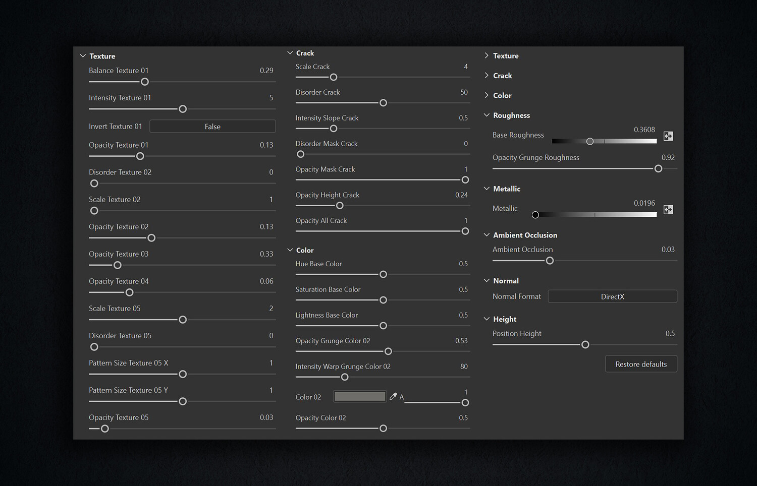 With the ability to change all settings and parameters in the SBsar file With excellent ability to change all kinds of settings in the Sbsar file: Because there were many parameters that can be changed, all the parameters are placed in the photo