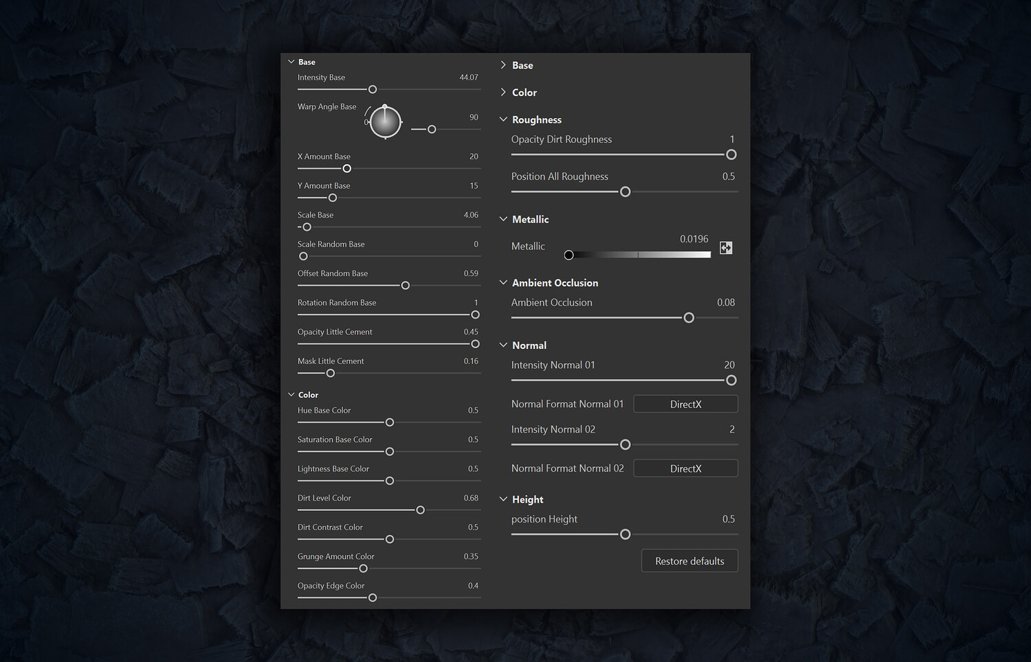 With the ability to change all settings and parameters in the SBsar file With excellent ability to change all kinds of settings in the Sbsar file: Because there were many parameters that can be changed, all the parameters are placed in the photo