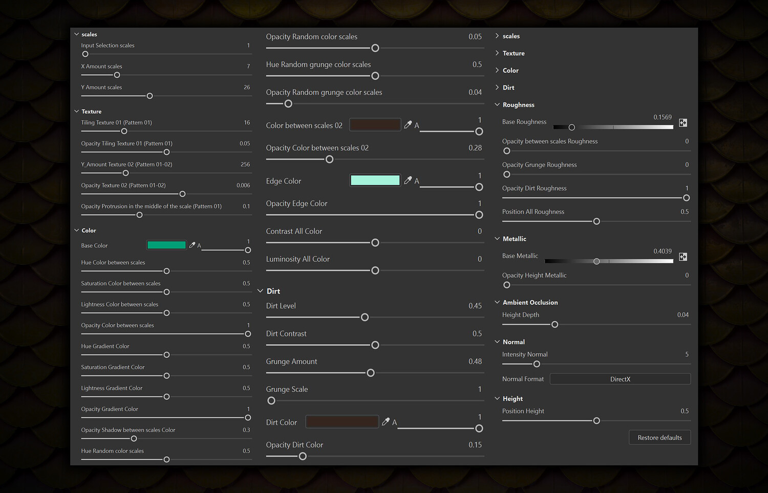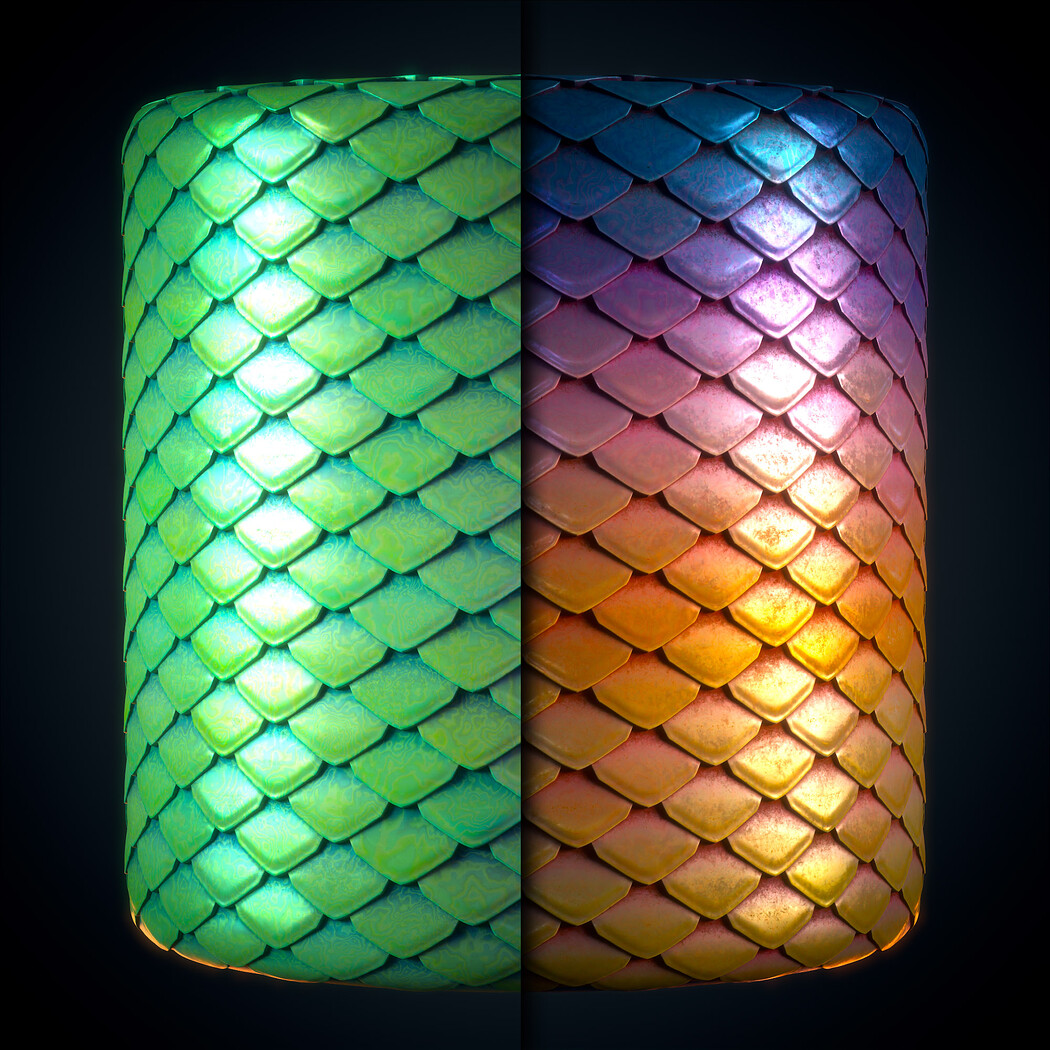 SBsar File Scales - Vol 01 - SBsar & Maps is designed in a real way and can be used for all kinds of games and animations. For use in all rendering and game engines SBSAR files with the ability to change all kinds of material parameters in the substance painter software (contains a photo of the parameters that can be changed) This materials Can be used for monsters, fish, snakes, creatures, demons, leather products such as bags, shoes, clothes, etc. in games, animations, advertising projects and architecture. Naming the clarity of all changeable items