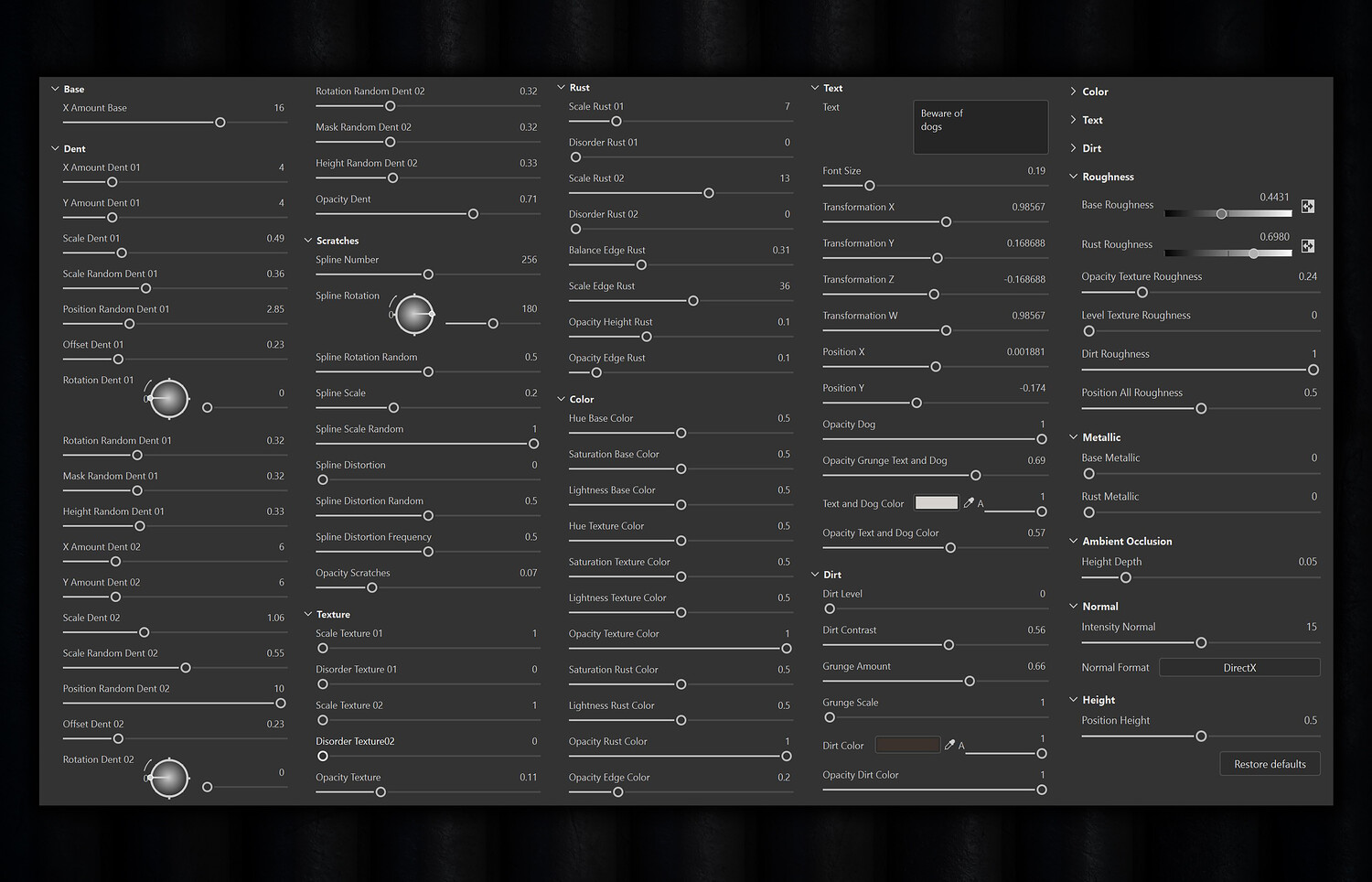 With excellent ability to change all kinds of settings in the Sbsar file: Because there were many parameters that can be changed, all the parameters are placed in the photo