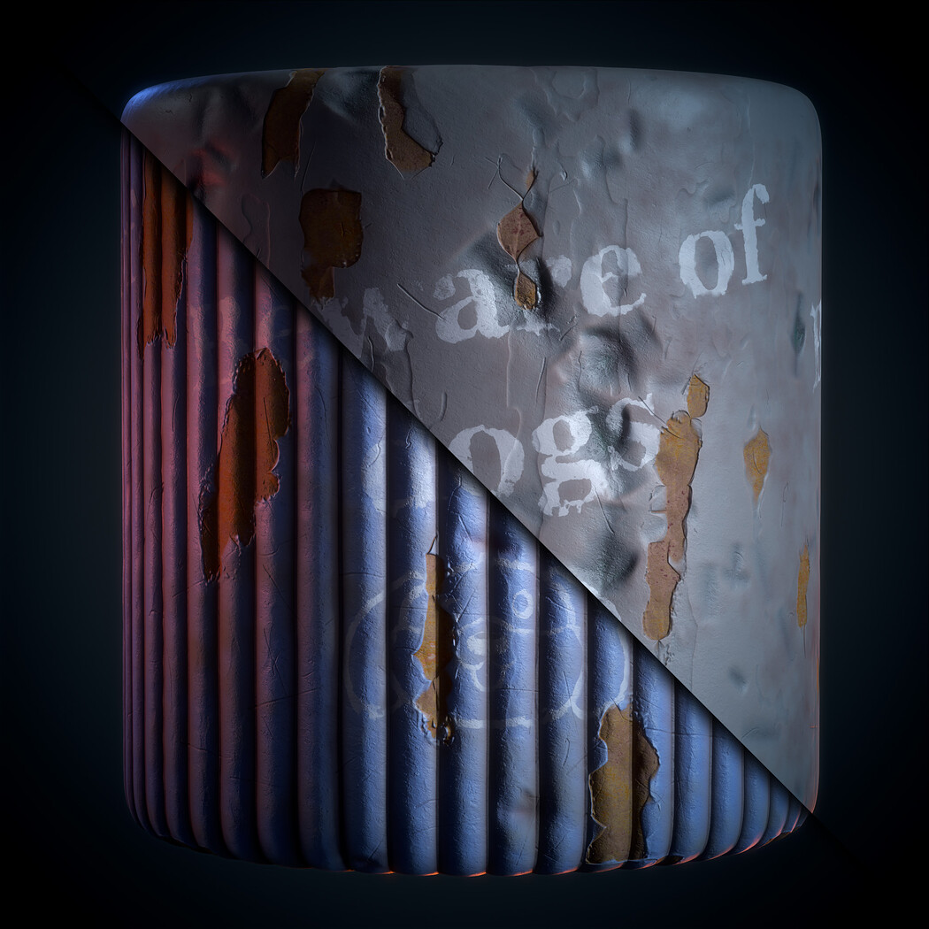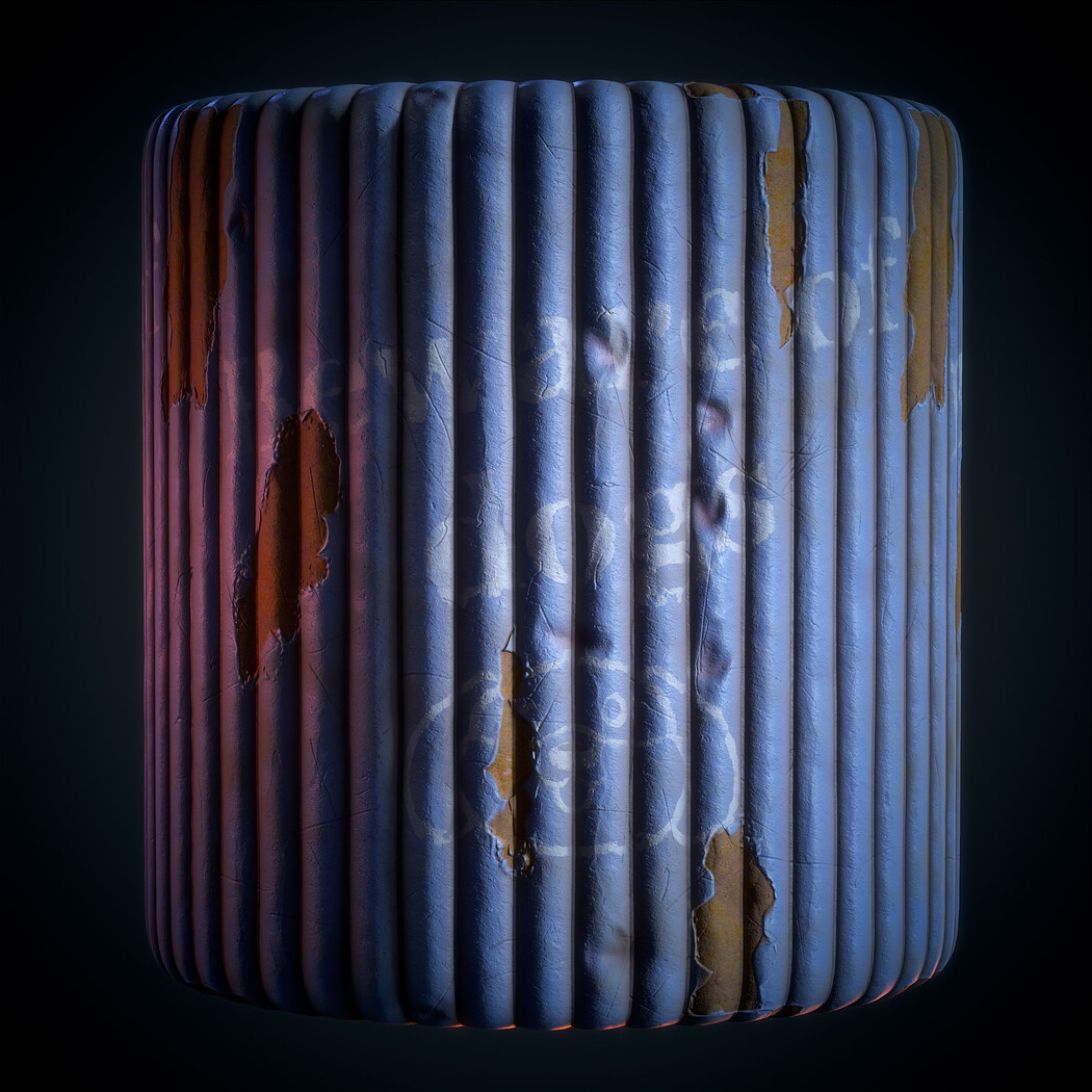 SBsar File Rusty Metal Sheets - VOL 01 - SBsar & Maps is designed in a real way and can be used for all kinds of games and animations. For use in all rendering and game engines SBSAR files with the ability to change all kinds of material parameters in the substance painter software (contains a photo of the parameters that can be changed) This material Can be used for all types of shop shutters, parking lots, garages, for closing around all types of land and places, etc. in games, animations, advertising projects and architecture. Naming the clarity of all changeable items