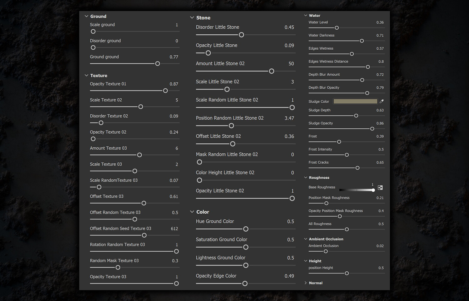 With the ability to change all settings and parameters in the SBS file With excellent ability to change all kinds of settings in the Sbsar file: Because there were many parameters that can be changed, all the parameters are placed in the photo