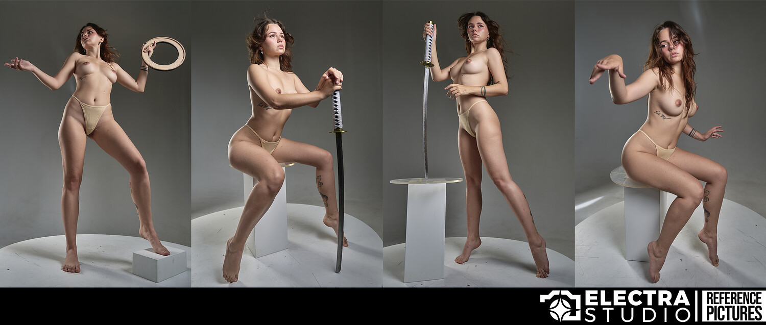 This unique pack brings you 1720+ high-quality reference photos featuring a charming model with a captivating mix of innocence and intensity. From playful smiles to striking weapon poses with guns, sticks, and katanas, every shot captures her expressive energy. Her movements are dynamic, her hair in motion, her poses ranging from standing and dancing to sitting on her knees — making this a perfect set for gesture practice, character design, portraits, and storytelling. Close-ups, full-body angles, and a wide range of moods ensure you’ll always find the right reference for your art. This is not your average pack — it’s a bold, versatile, and truly inspiring collection.