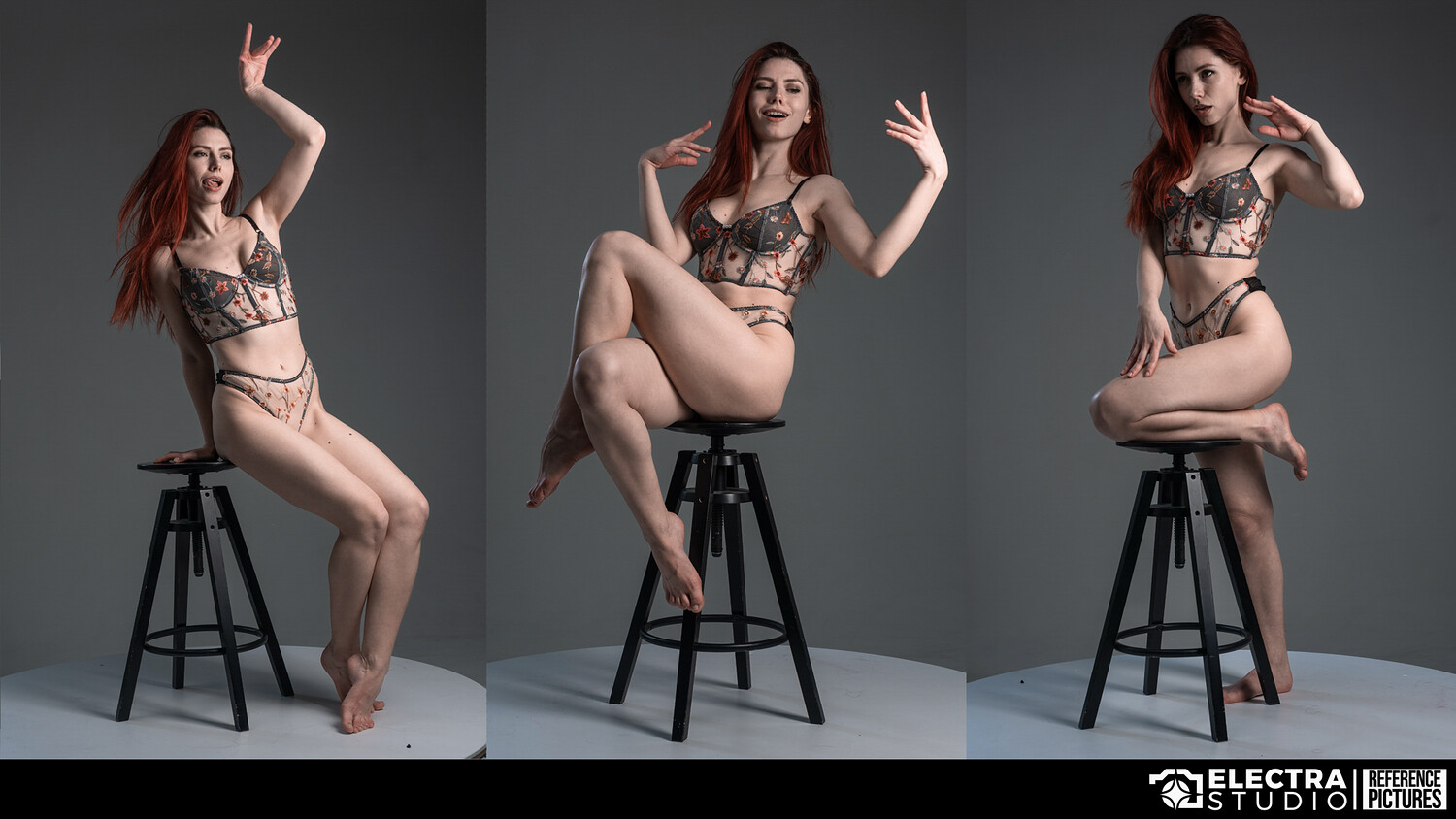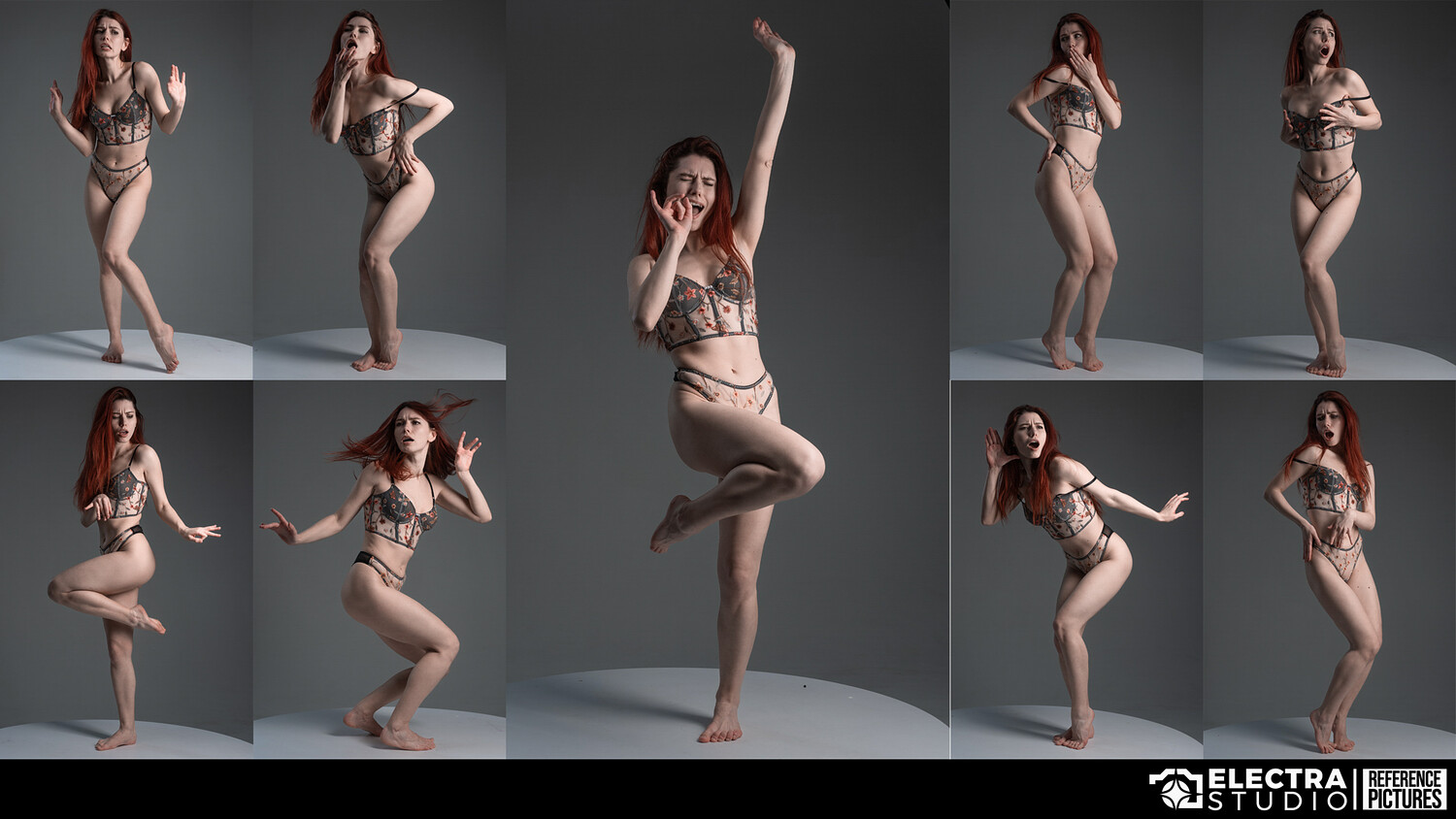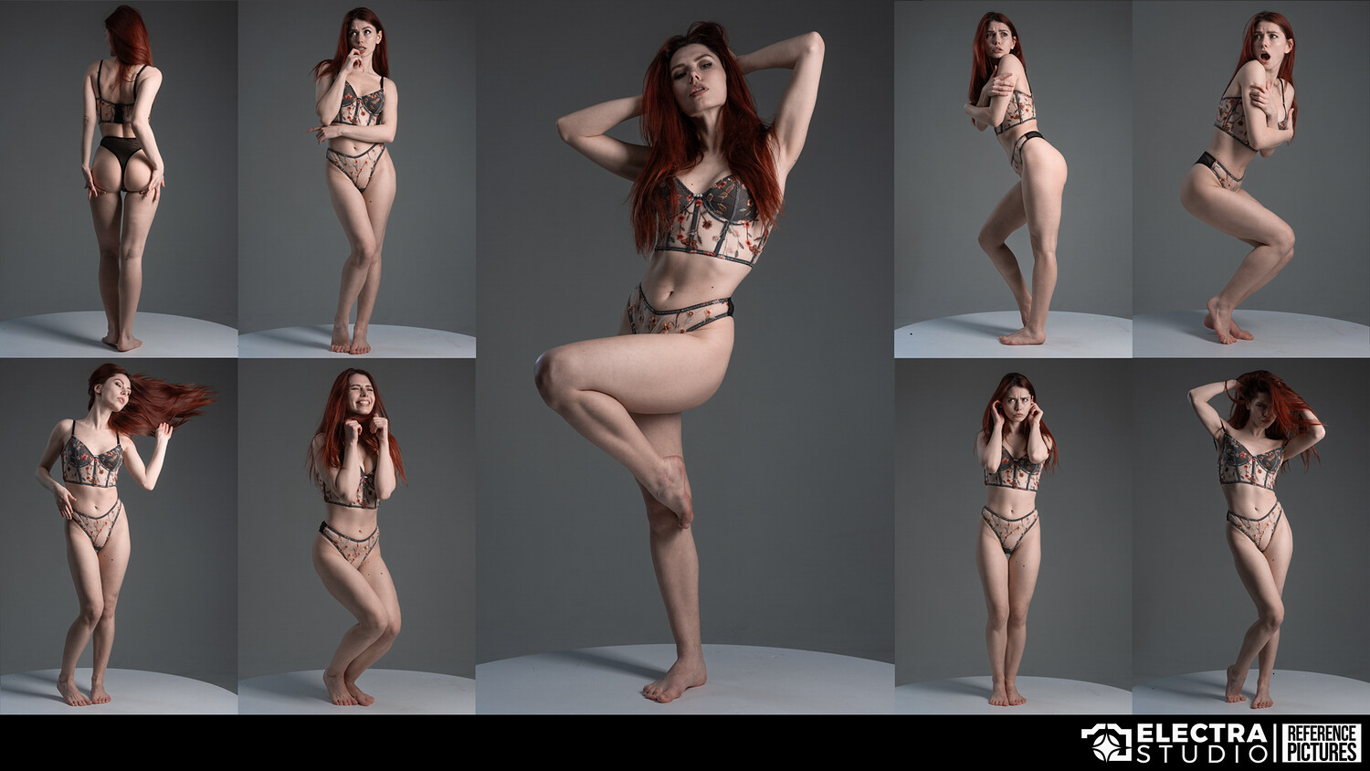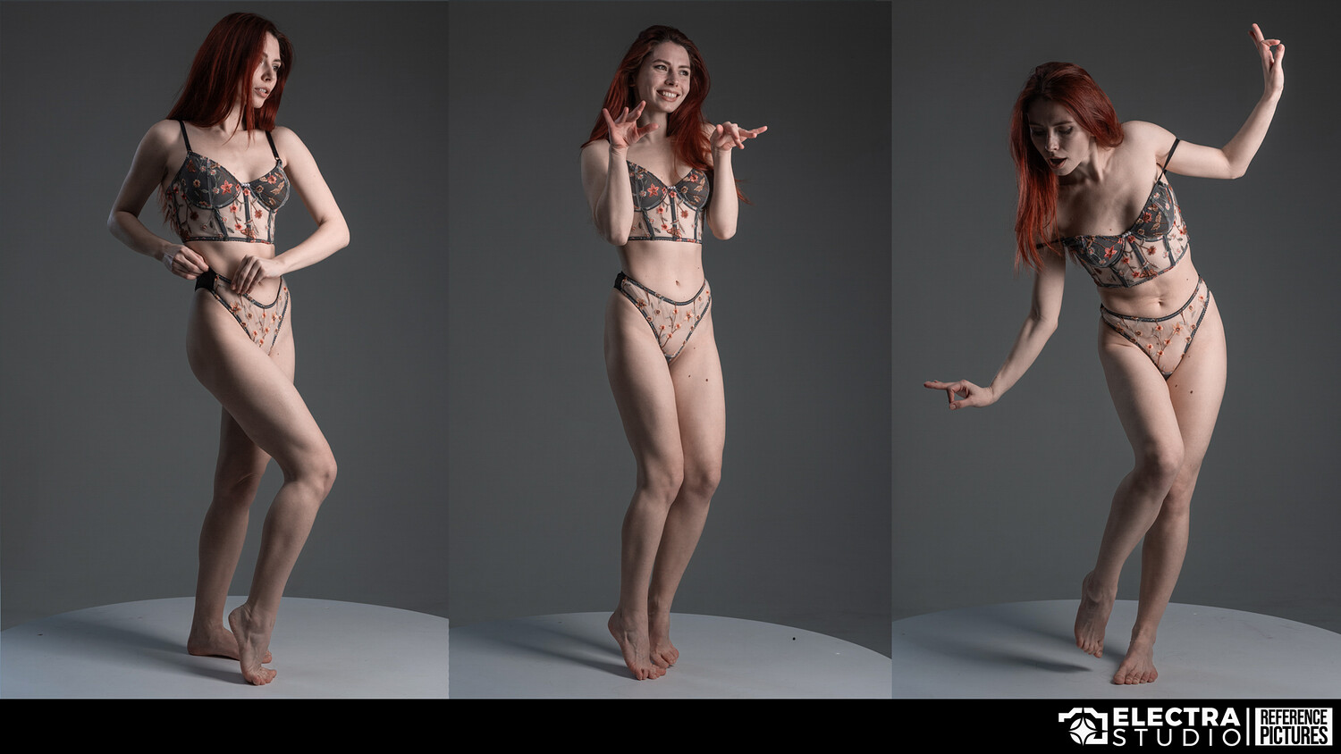 Unleash the joy of movement and expression with Free-Spirited Charm: Lively Energy Poses! This pack features a radiant redhead model in dreamy floral lingerie, bursting with personality, laughter, and dynamic energy. With flowing hair, playful poses, and expressive portraits — from mysterious glances to carefree giggles — these 490+ reference pictures are perfect for adding emotion, motion, and whimsy to your art. Let your creativity dance with every frame!