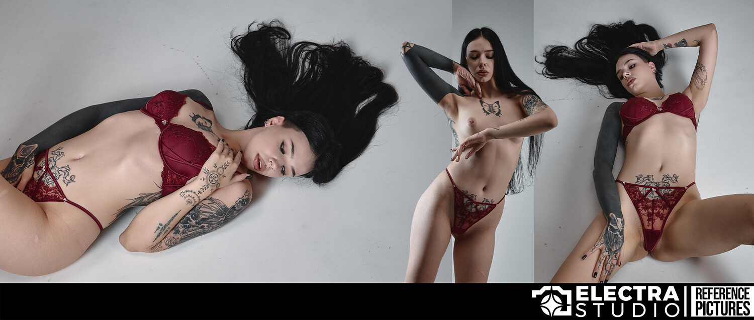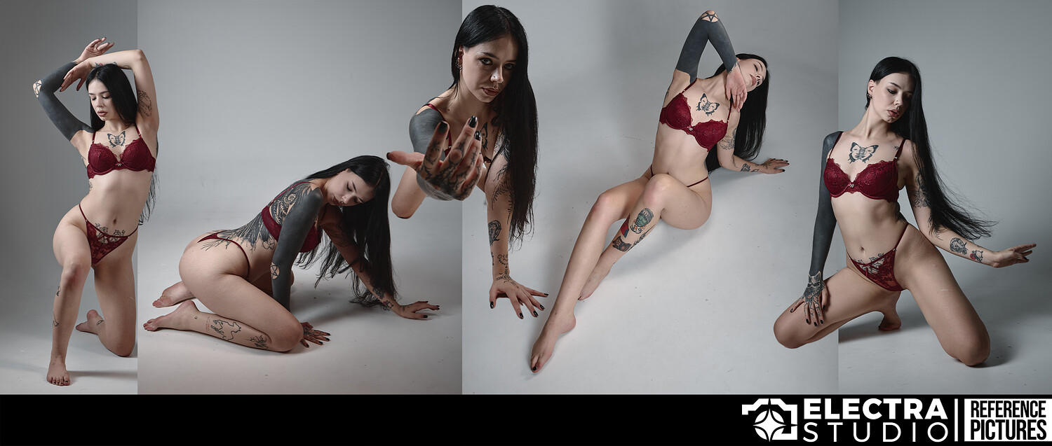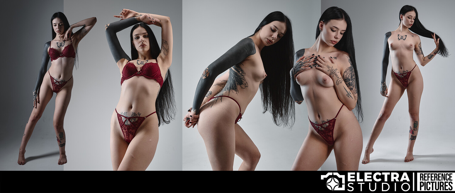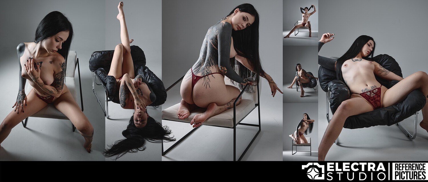 Discover the allure of Tattooed Beauty in this stunning reference pack! Featuring a striking model with long black hair and mesmerizing tattoos, this collection captures a wide variety of artistic poses—standing, sitting, lounging, and even posed on a chair.