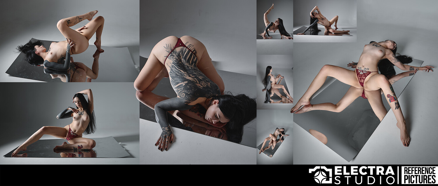 Some poses include creative mirror-style shots, where her reflection is perfectly captured for unique angles and artistic inspiration. With her bold red outfit and some artistic poses, this pack is perfect for artists seeking dynamic and expressive references.