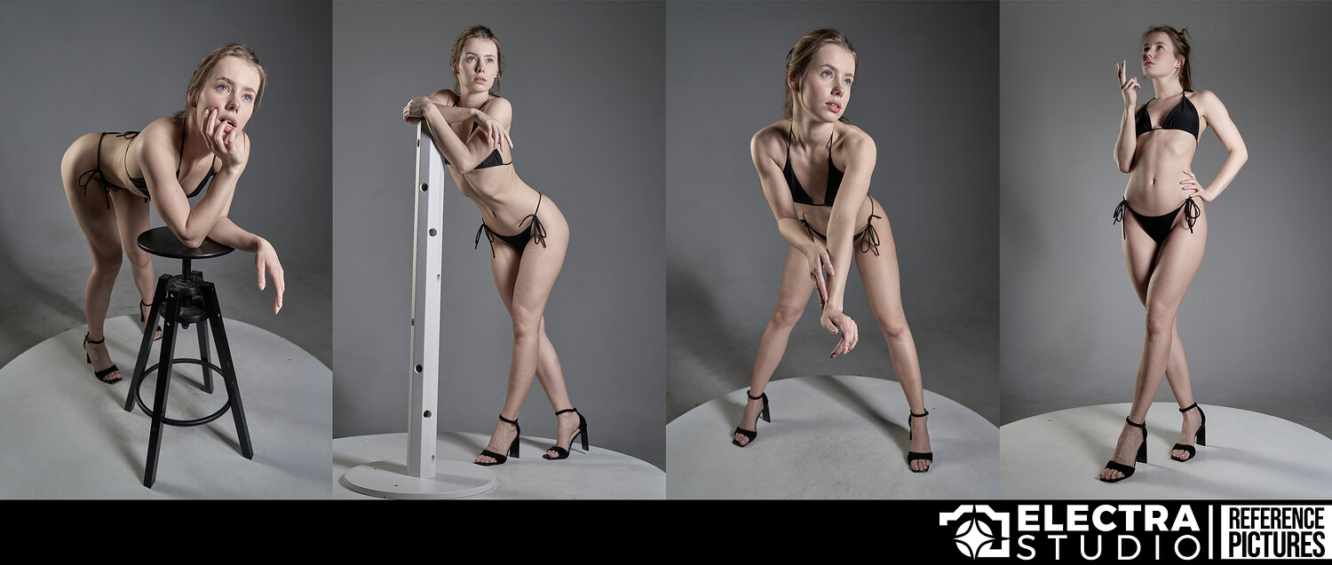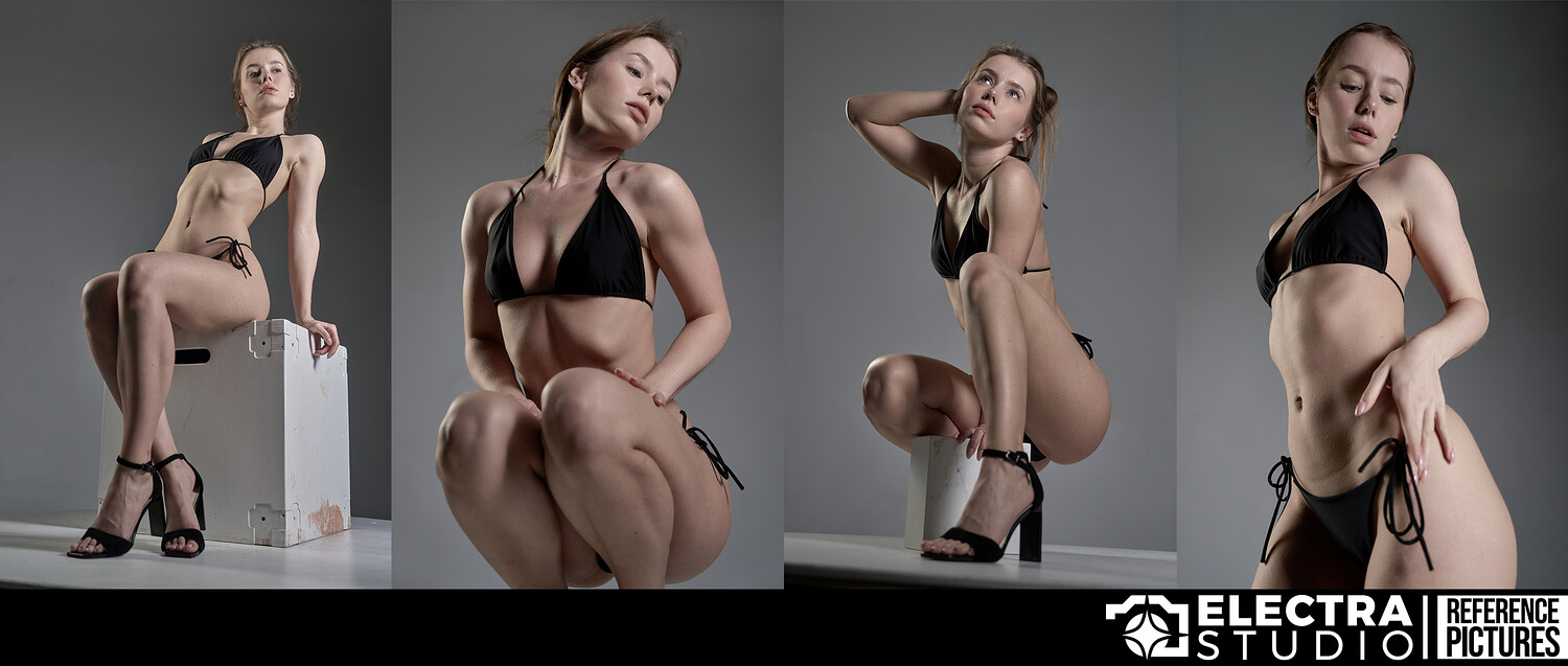 Explore over 1460 high-quality reference photos in “Graceful Shot: Female Pose Collection Part I”, featuring a stunning model in a sleek black bikini and high heels. This versatile pack captures her in dynamic and static poses — sitting, standing, reclining on a cube or chair — from multiple angles, including full 360-degree rotations and captivating portraits.