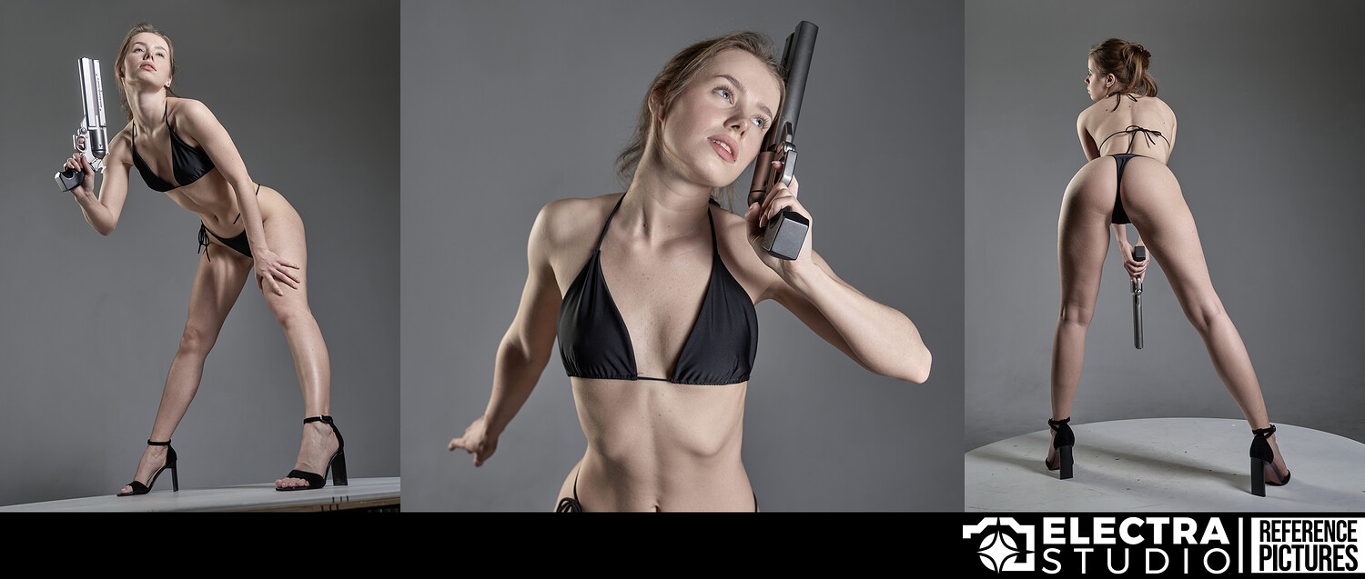 Some shots include weapons like guns, adding storytelling and dramatic flair, while the model’s slender physique, elegant body language, and expressive gestures provide a rich resource for artists seeking realism, movement, and style. Perfect for figure drawing, character design, illustration, or any creative project that needs depth, grace, and cinematic presence.