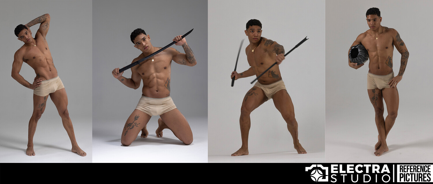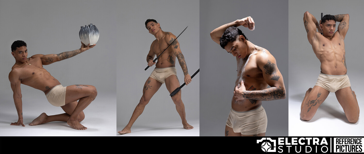 990+ Colombian Heat: Male Anatomy & Attitude Reference Pack delivers raw energy, strength, and expressive motion in a striking studio setup. This collection features a powerful Colombian model captured in 990+ high-quality photos, combining dynamic body language with dramatic props and atmosphere.