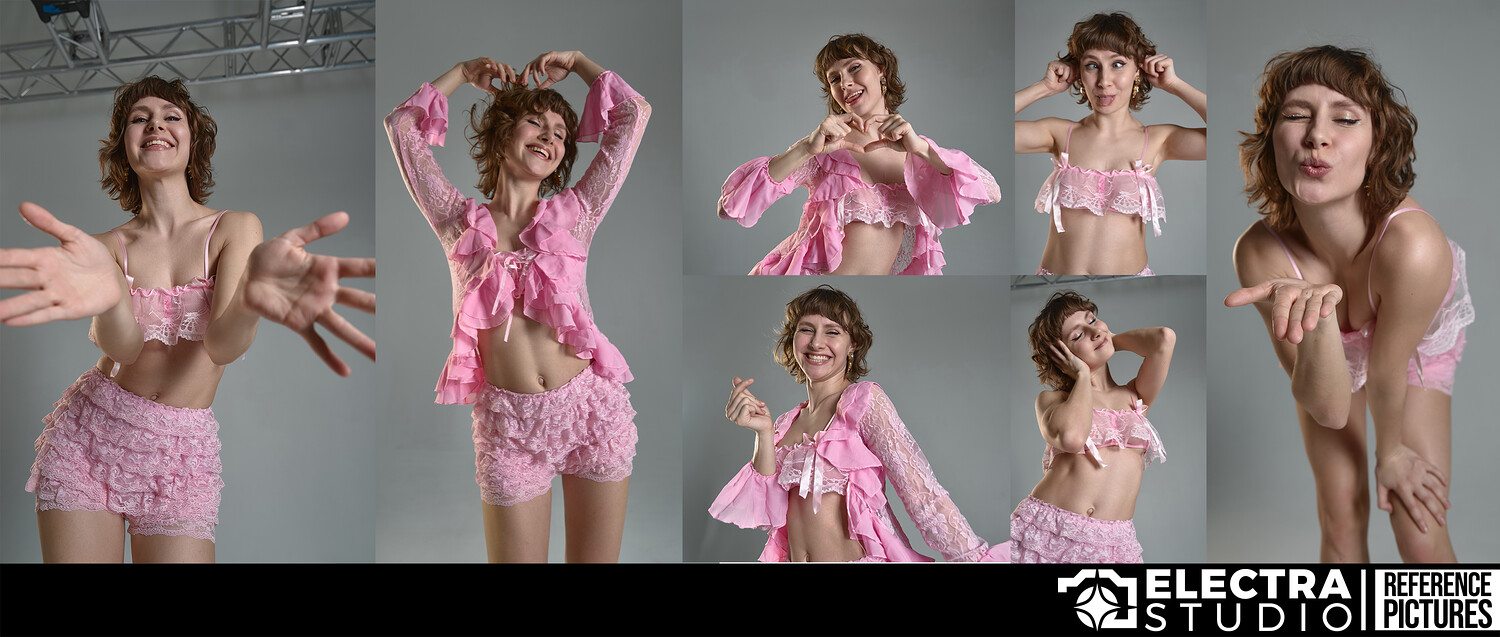 Step into a world of charm and confidence with this stunning set of 1400+ reference pictures, where flirtatious energy meets gentle grace. Featuring a dynamic model with cascading hair in both elegant black and delicate pink lingerie, this pack offers everything from playful hand kisses to sensual sitting, lying, and standing poses. From soft and cute to bold and expressive — this collection is perfect for artists looking to capture movement, personality, and emotion in every sketch. Let your creativity bloom!