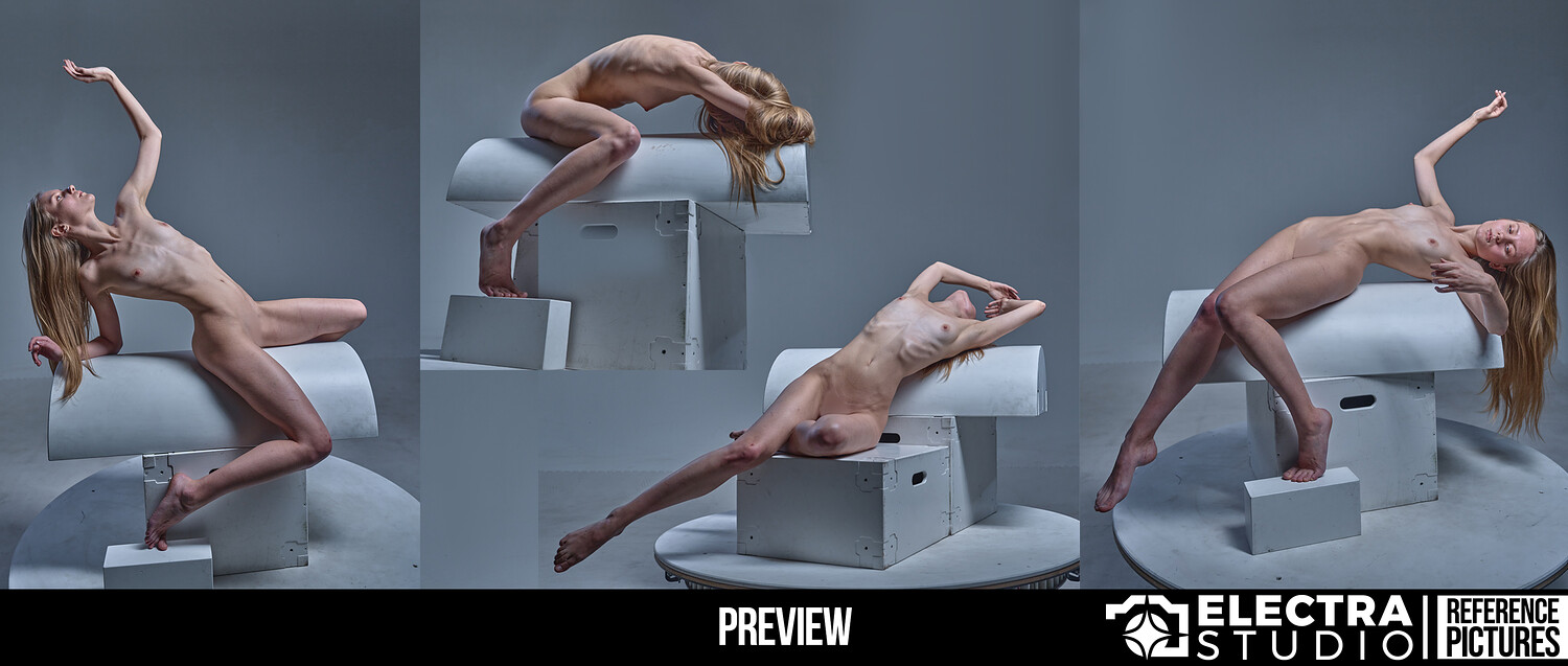 Figure Sculpture: Female Anatomy Reference is a study of the human body as form, structure, and presence. With 1150+ high-quality photos, this pack captures a striking female model in a wide range of standing, sitting, and reclining poses, including compositions on a cube and expressive setups with a stick and spear.