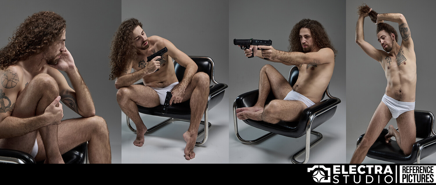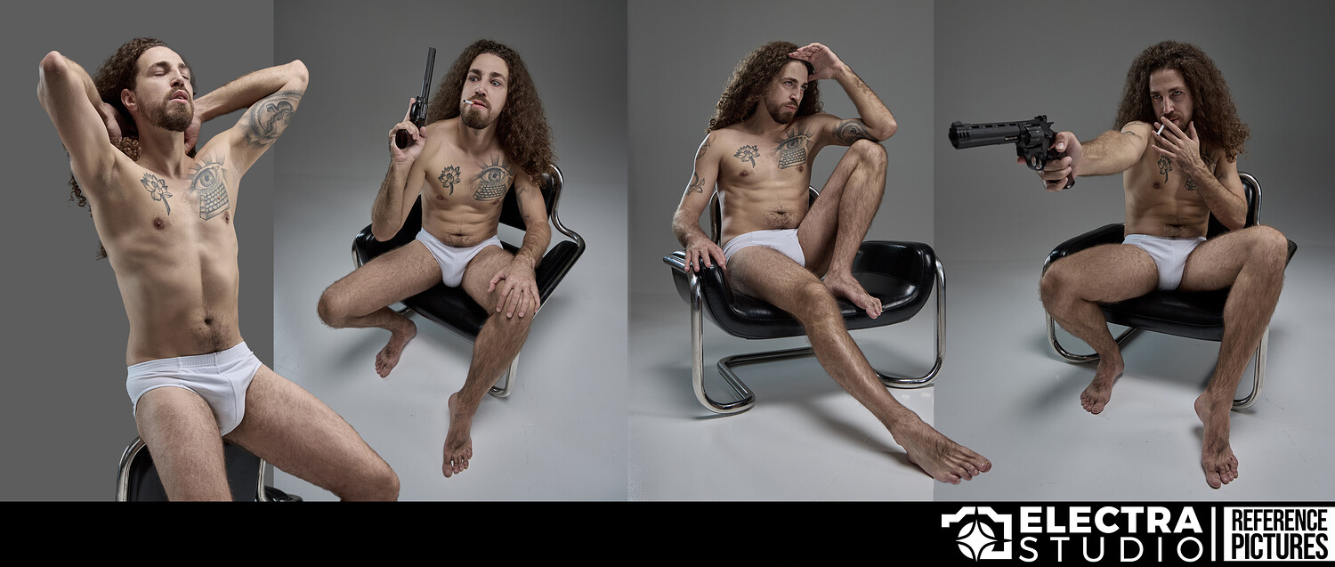 This reference pack captures a striking male figure with a presence that feels timeless — like a modern echo of Greek mythology placed in a contemporary studio setting. Calm, grounded, and sculptural, every pose is built around strong silhouettes, relaxed confidence, and subtle storytelling.