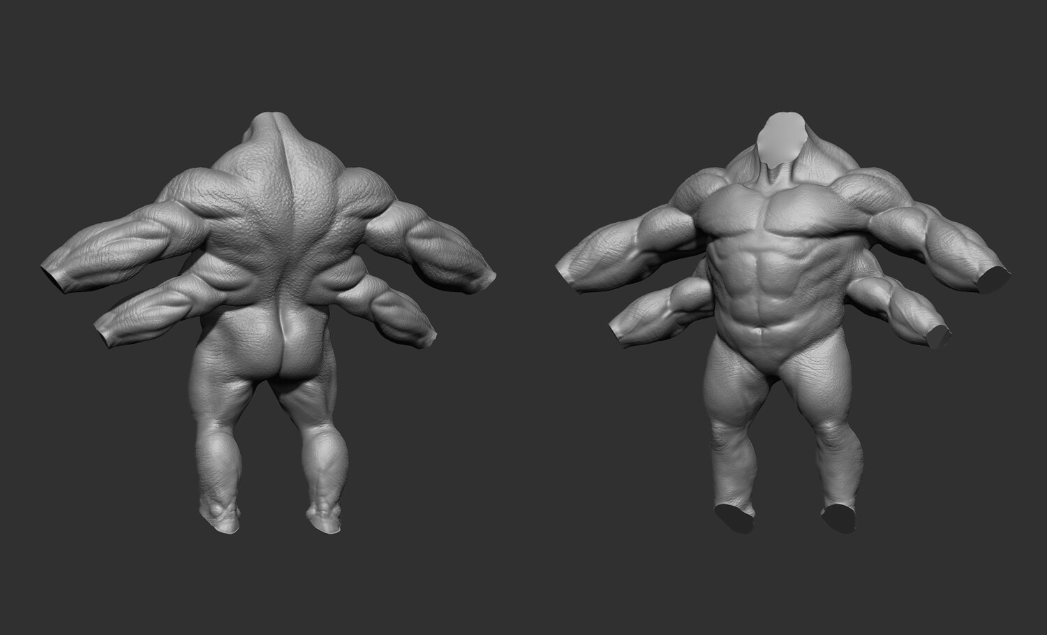 The body is an un-textured high poly sculpt, with high detail such as pores and veins.