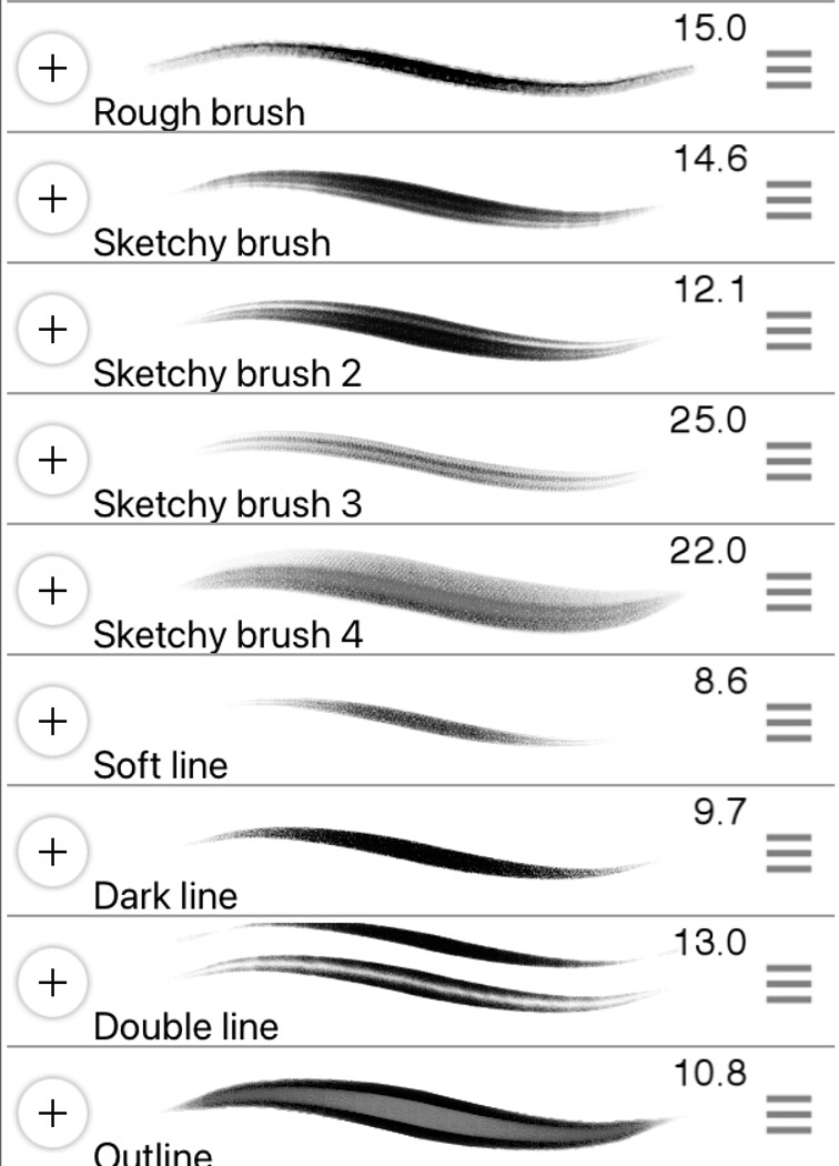 You will Get 9 Different Brushes for sketching and line Art on IBIS PAINT