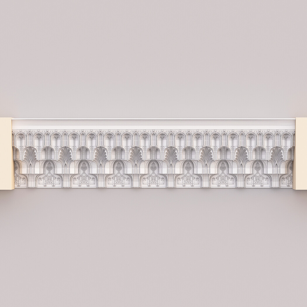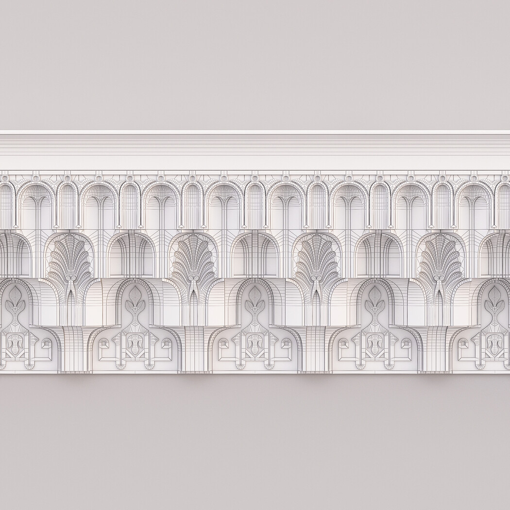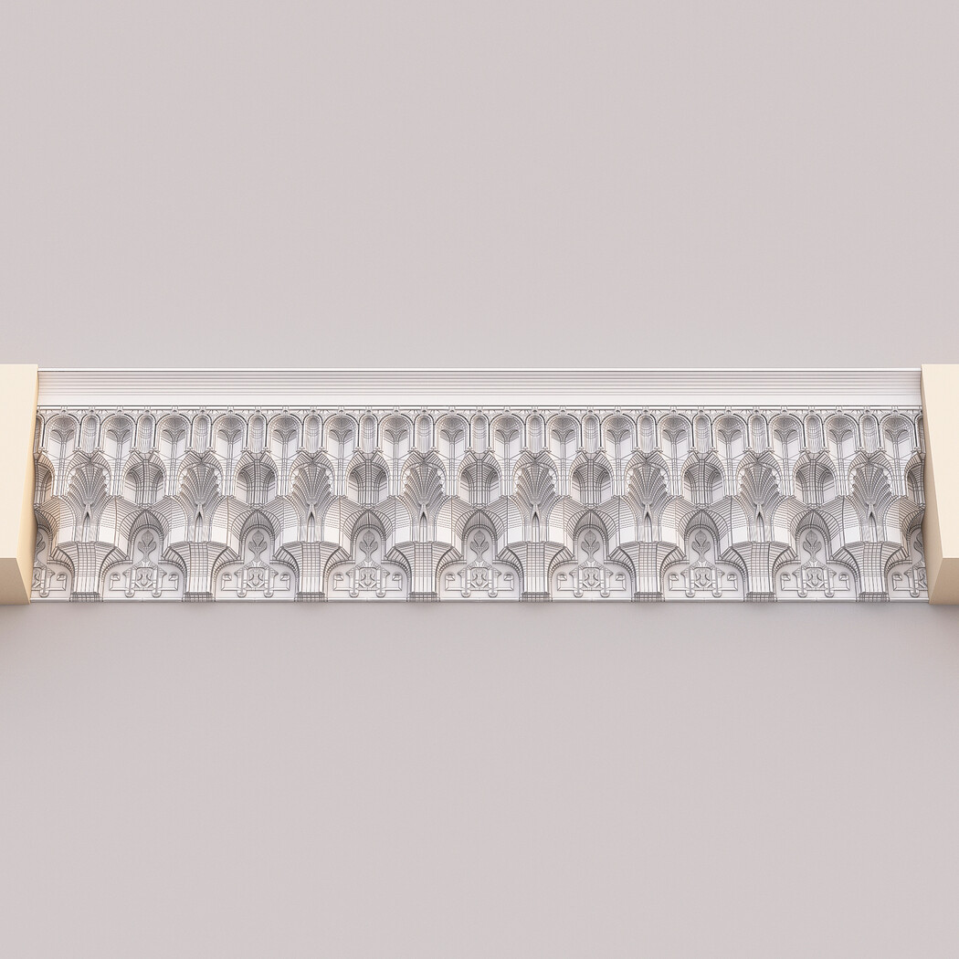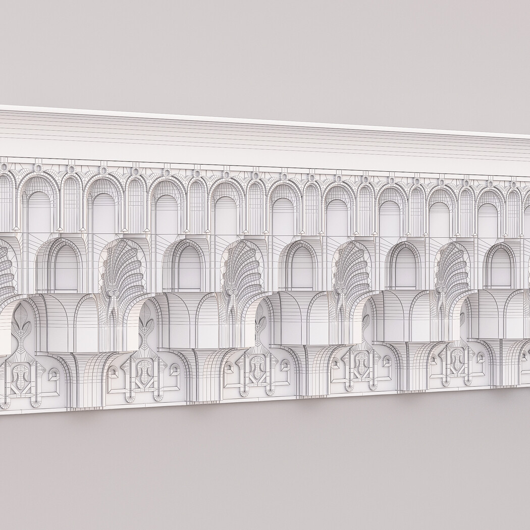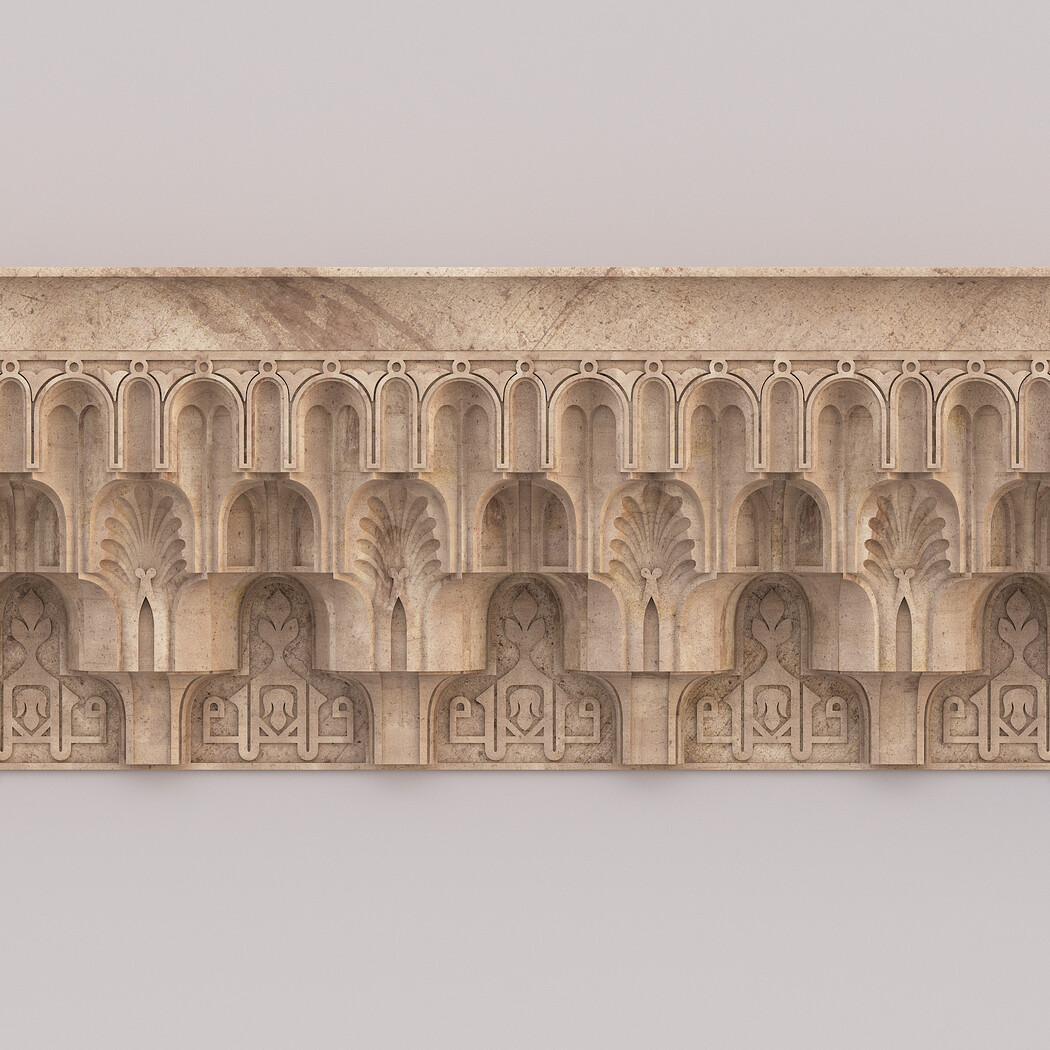Classic Islamic Muqarnas Cornice 001 3ds max modeling 3ds max 2024 Vray 6 Polygons: 107 731 Vertices: 114 225 Unwrapped: Fully unwrapped , non-overlapping Format : FBX, OBJ, STL Height: 57 cm Length: 23 cm Width: 232 cm Textures: All textures are seamless ConcreteDiffuse - JPG 4096x4096 ConcreteBump - JPG 4096x4096 Dirt_Texture - PNG 2200x2200