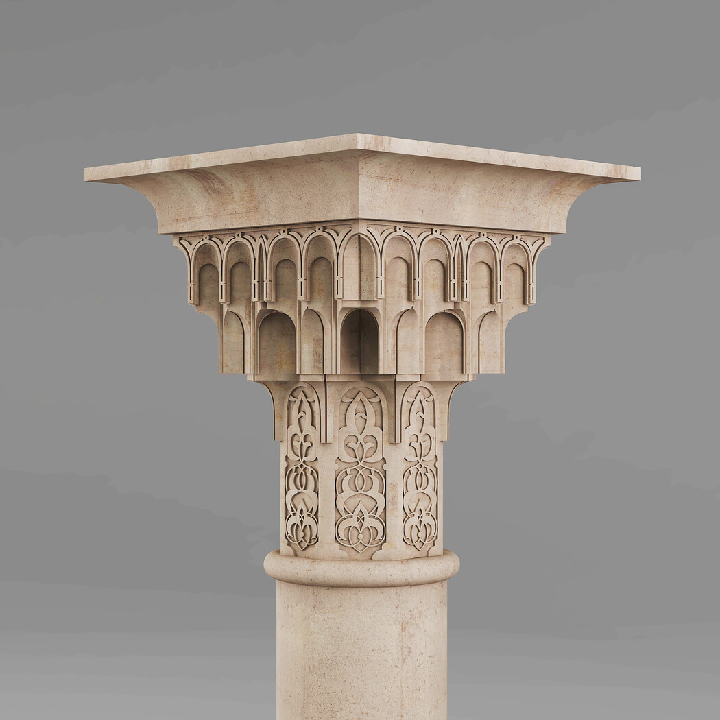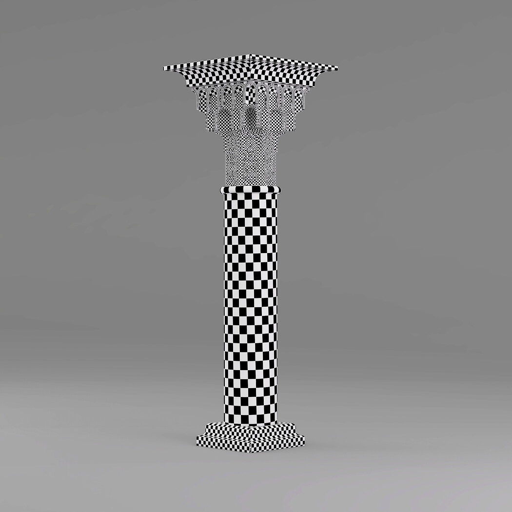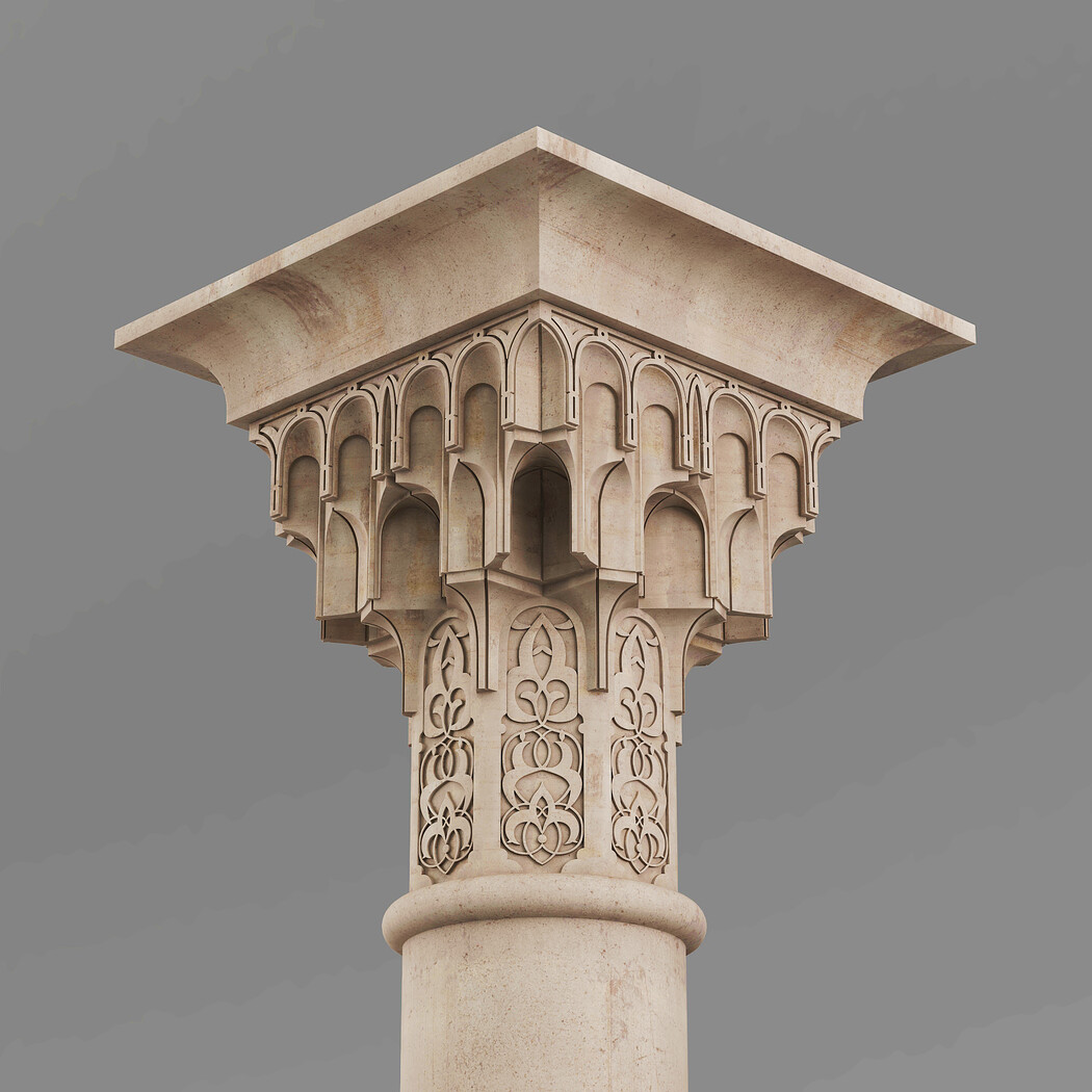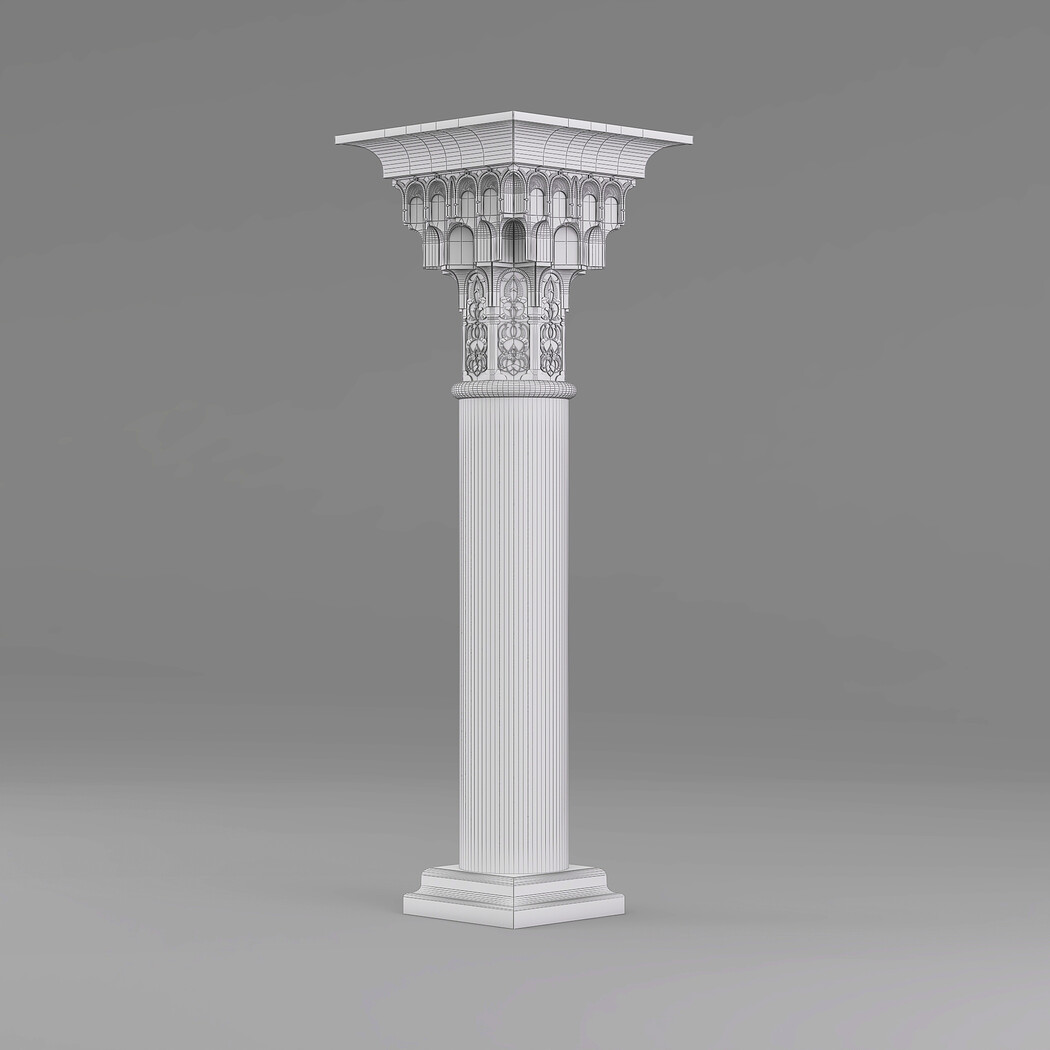 Classic Islamic Muqarnas Column 002 3ds max modeling 3ds max 2024 Vray 6 Polygons: 113 851 Vertices: 127 672 Unwrapped: Fully unwrapped , non-overlapping Format : FBX, OBJ, STL Height: 220 cm Length: 72 cm Width: 72 cm Textures: All textures are seamless ConcreteDiffuse - JPG 4096x4096 ConcreteBump - JPG 4096x4096 Dirt_Texture - PNG 2200x2200