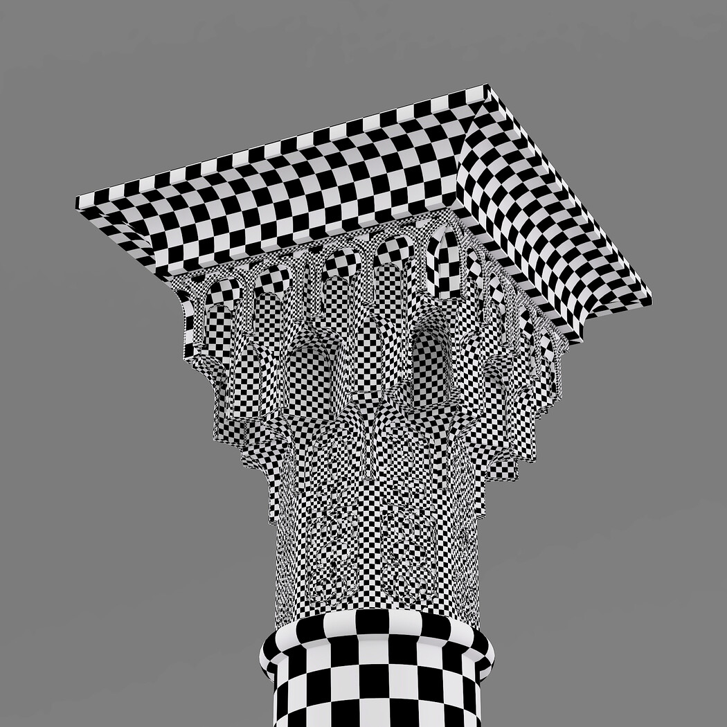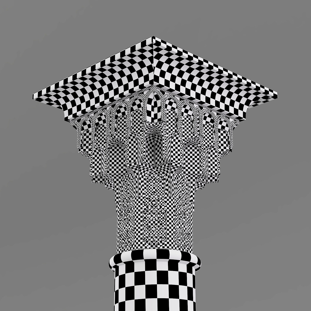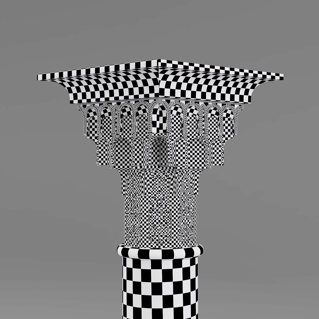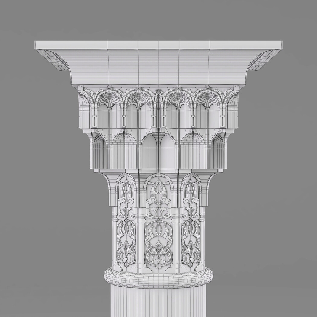 Classic Islamic Muqarnas Column 002 3ds max modeling 3ds max 2024 Vray 6 Polygons: 113 851 Vertices: 127 672 Unwrapped: Fully unwrapped , non-overlapping Format : FBX, OBJ, STL Height: 220 cm Length: 72 cm Width: 72 cm Textures: All textures are seamless ConcreteDiffuse - JPG 4096x4096 ConcreteBump - JPG 4096x4096 Dirt_Texture - PNG 2200x2200