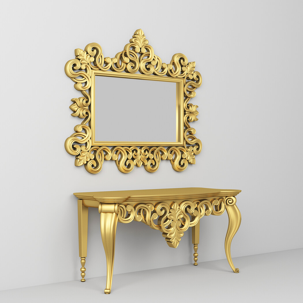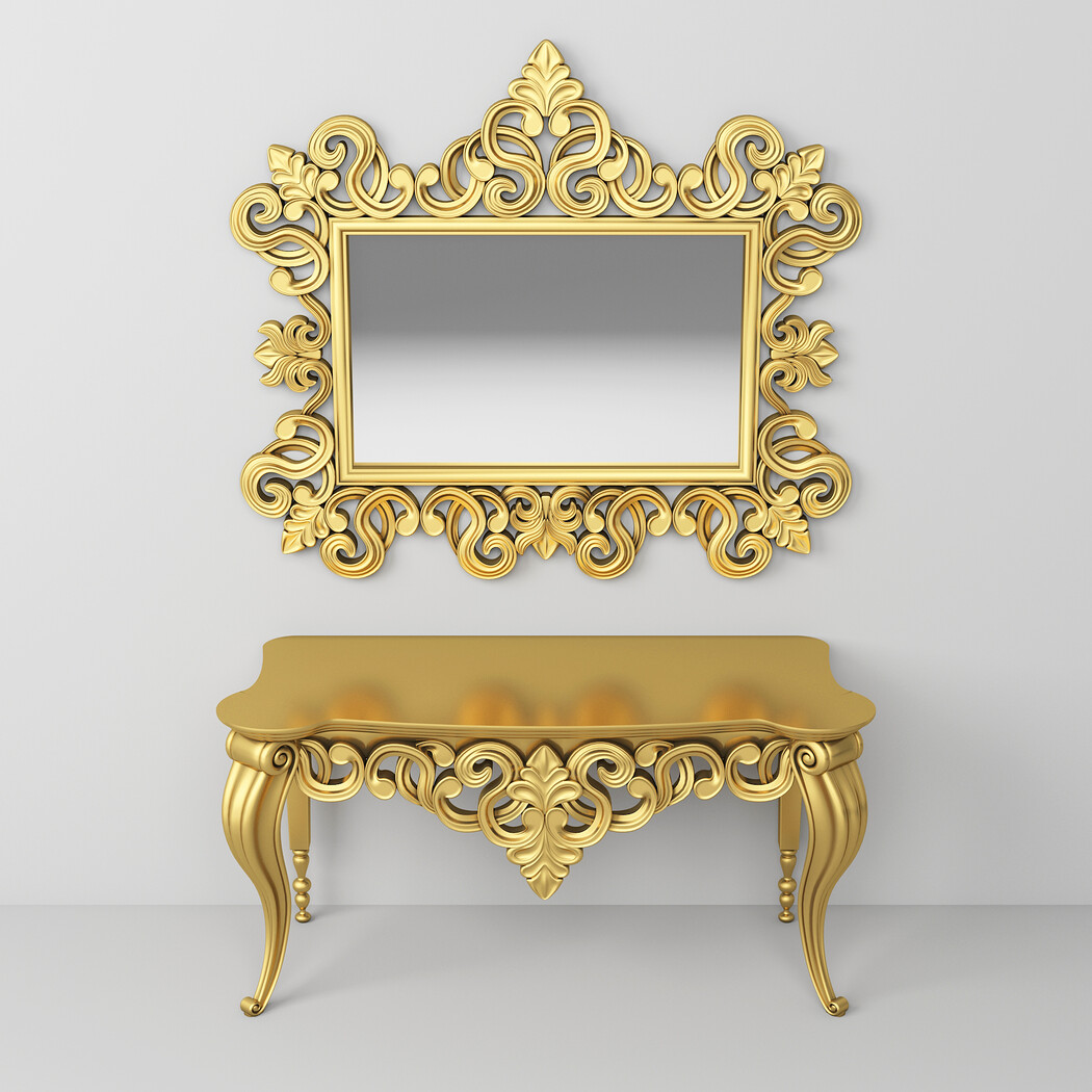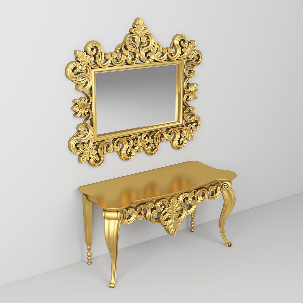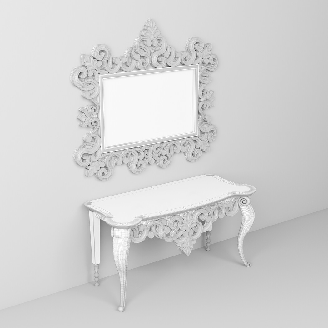 Classic Console Table and Mirror 001 3ds max modeling 3ds max 2015 Vray 3.60.03 Polygons 312922 Vertices 318626 Format fbx obj stl Height 190 cm Length 56 cm Width 130 cm