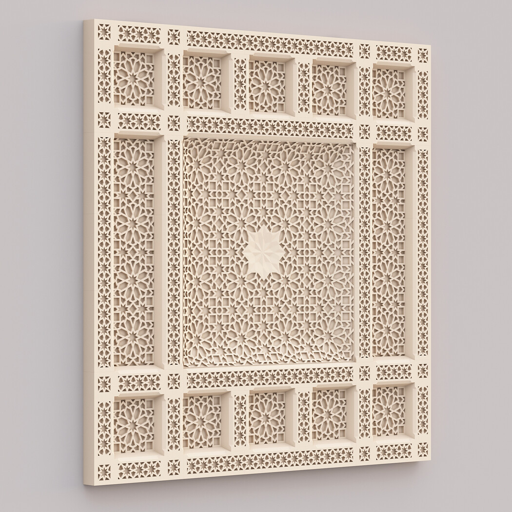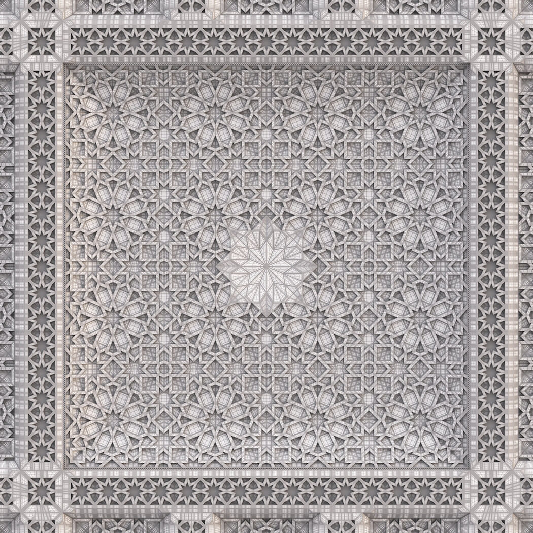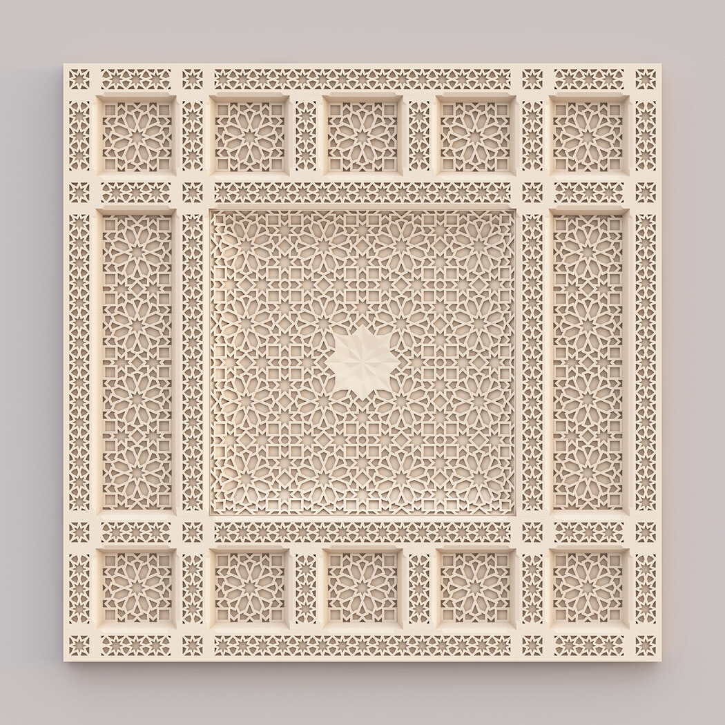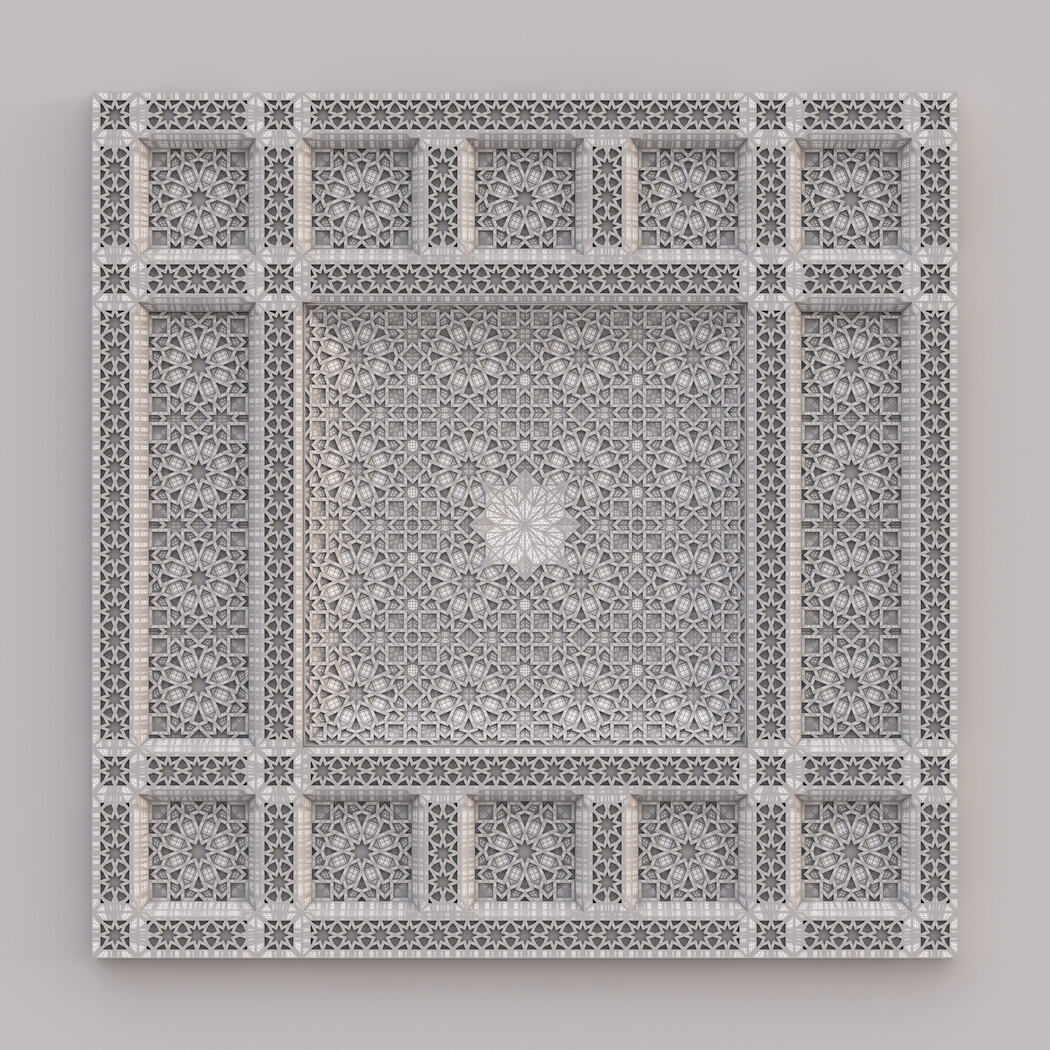Classic Islamic Ceiling 001 3ds max modeling 3ds max 2015 Vray 3.60.03 Polygons 13 040 468 Vertices 13 043 816 Format fbx obj stl Height 300 cm Length 12 cm Width 300 cm