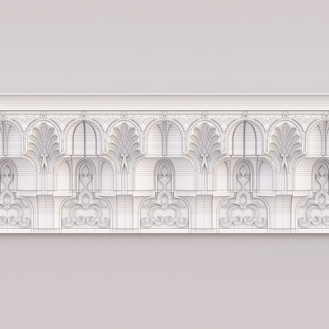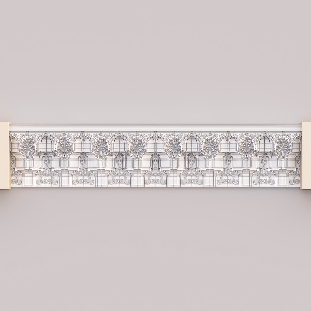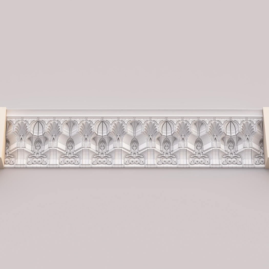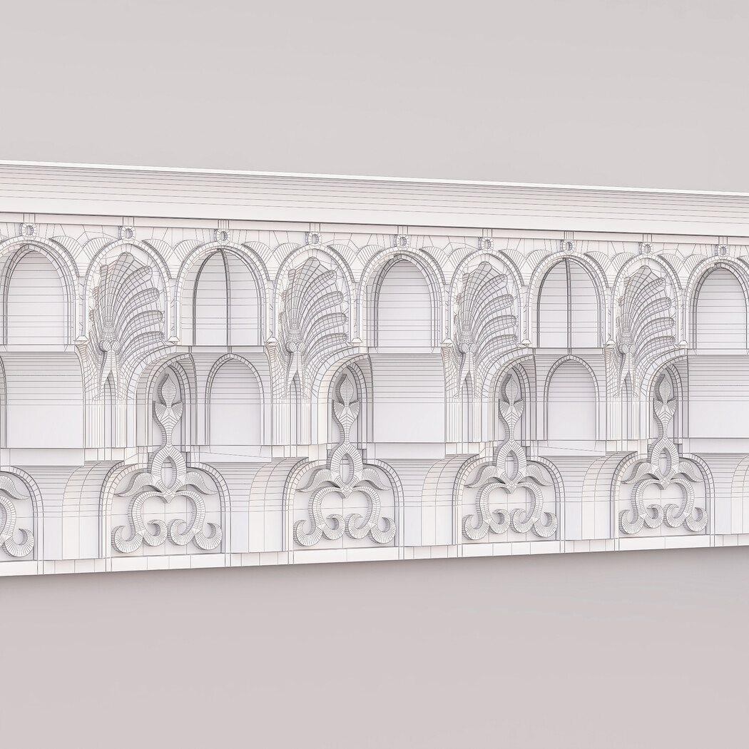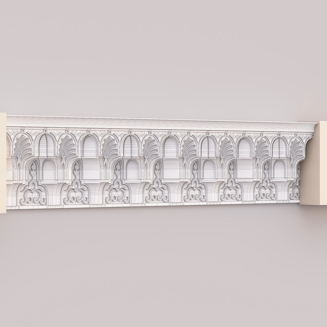 Classic Islamic Muqarnas Cornice 002 3ds max modeling 3ds max 2024 Vray 6 Polygons: 83 497 Vertices: 88 929 Unwrapped: Fully unwrapped , non-overlapping Format : FBX, OBJ, STL Height: 45 cm Length: 16 cm Width: 206 cm Textures: All textures are seamless ConcreteDiffuse - JPG 4096x4096 ConcreteBump - JPG 4096x4096 Dirt_Texture - PNG 2200x2200