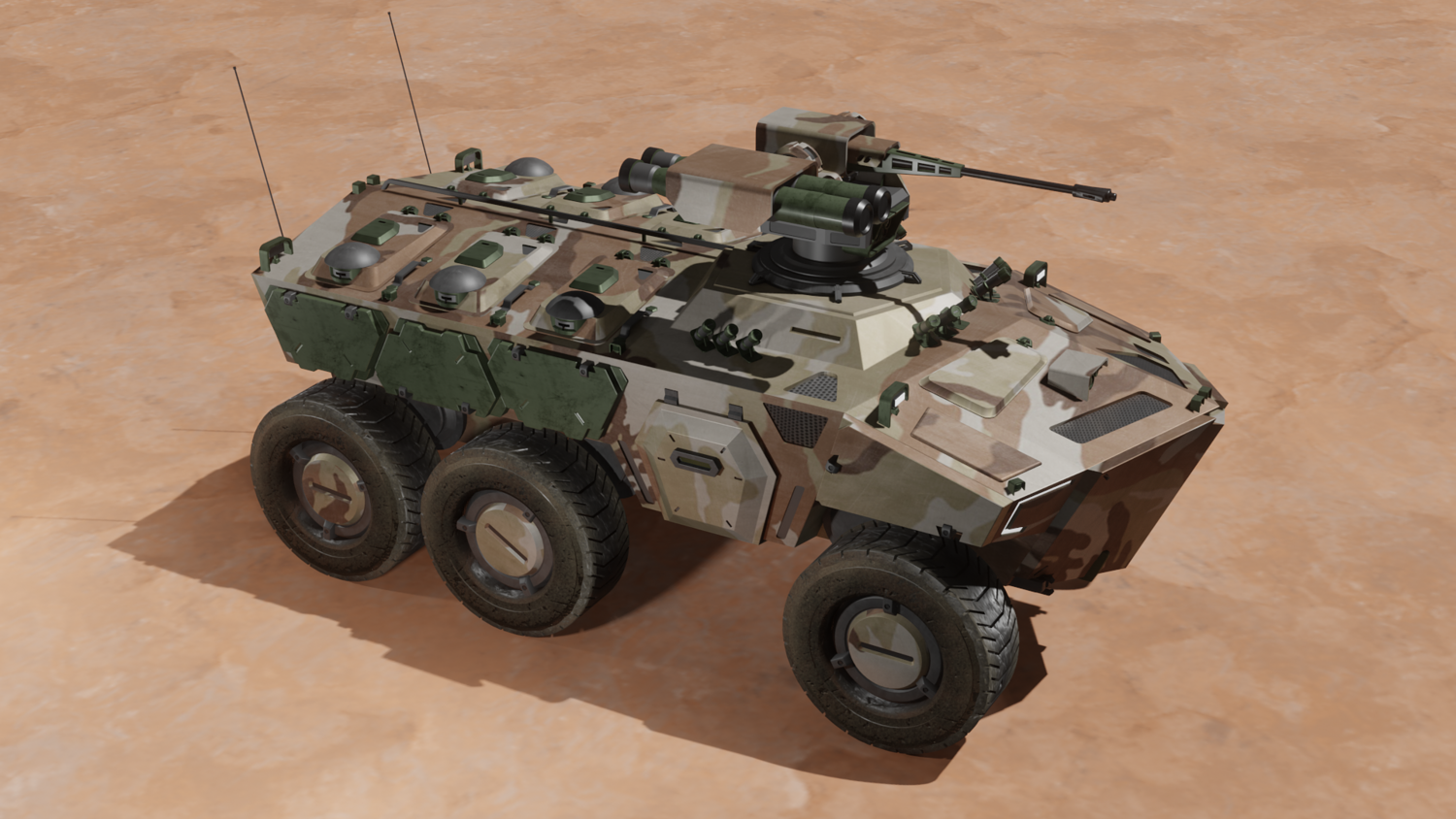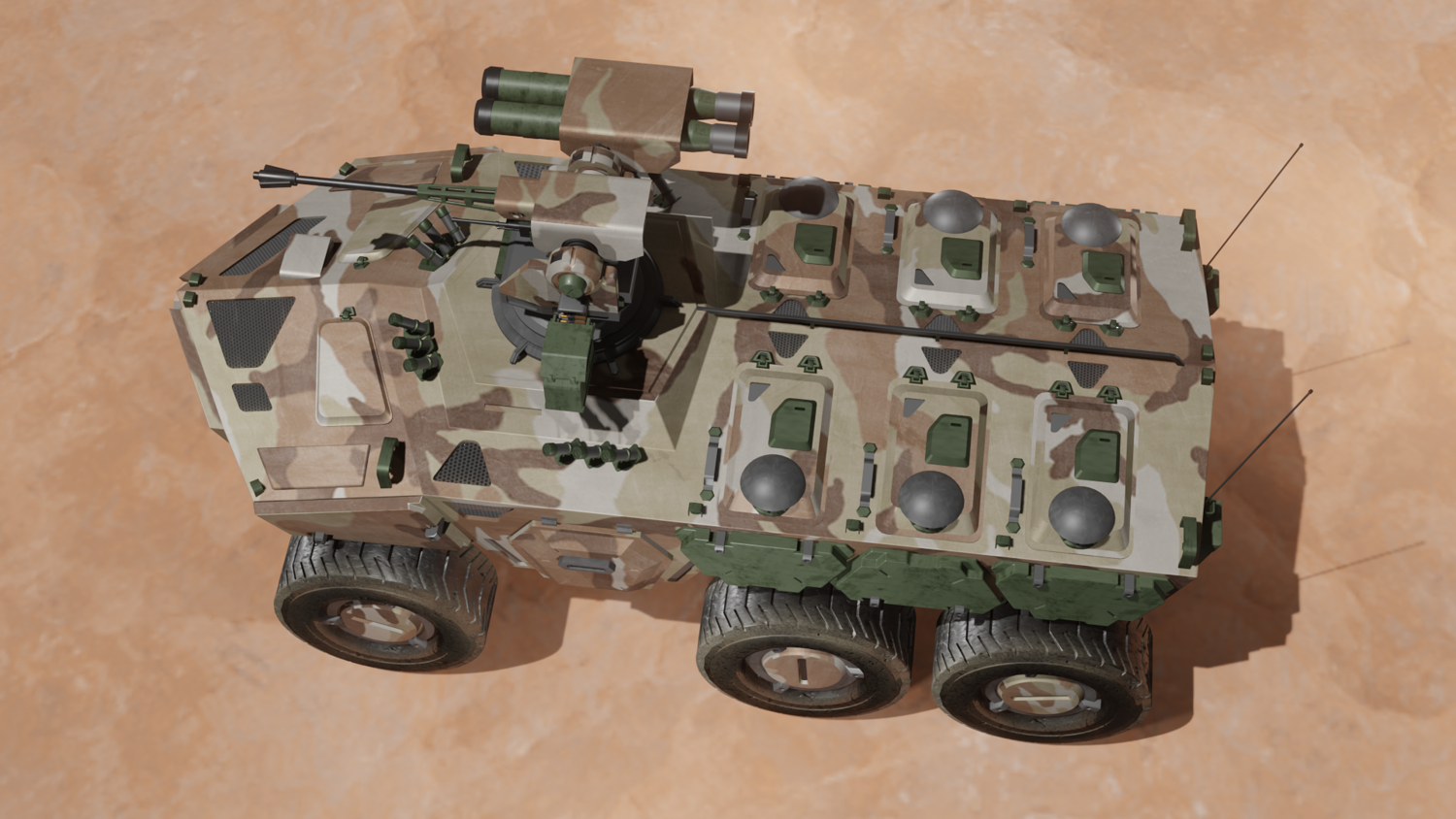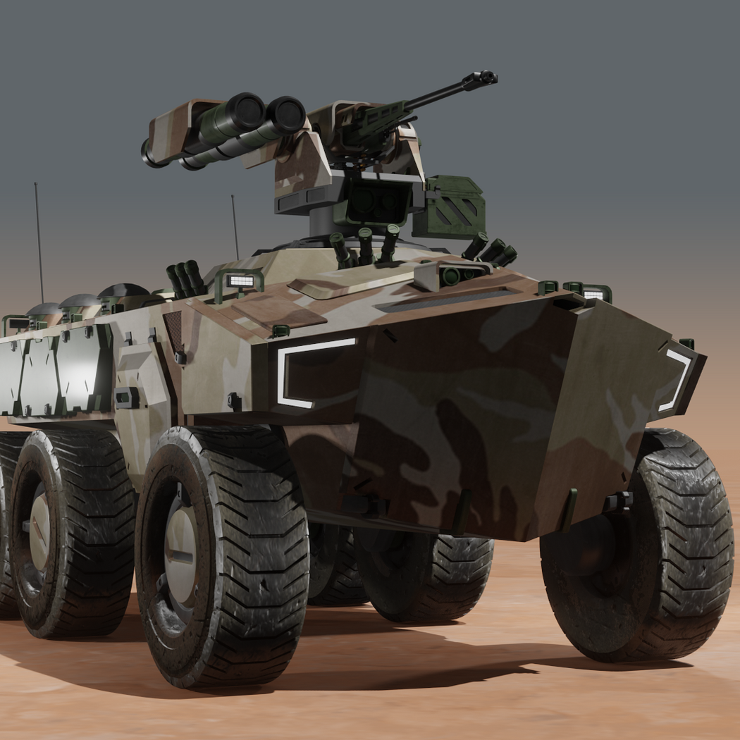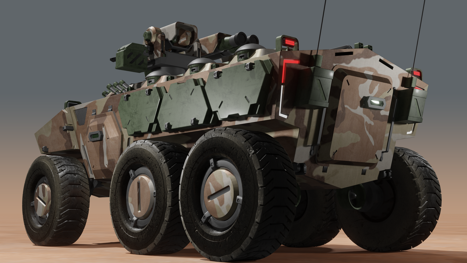 Scifi APC with Desert Camouflage modeled with blender 3.3. 21 textures used, UV mixed. 3 formats supported, blender fbx and obj. In FBX and OBJ file all objects are combined into several named objects while in Blender file they are separated for easy editing.