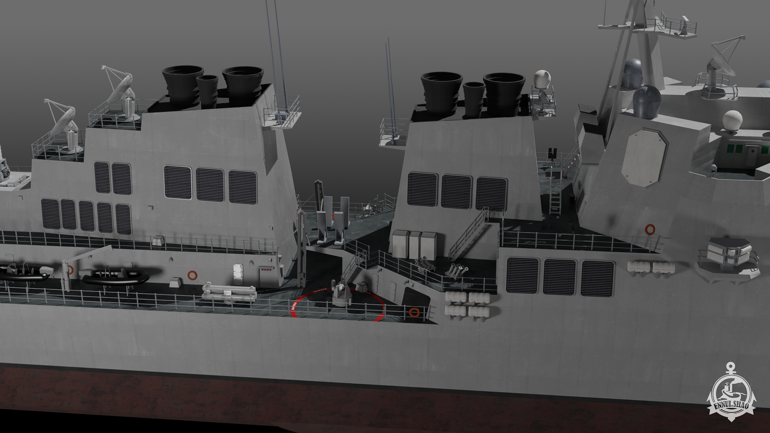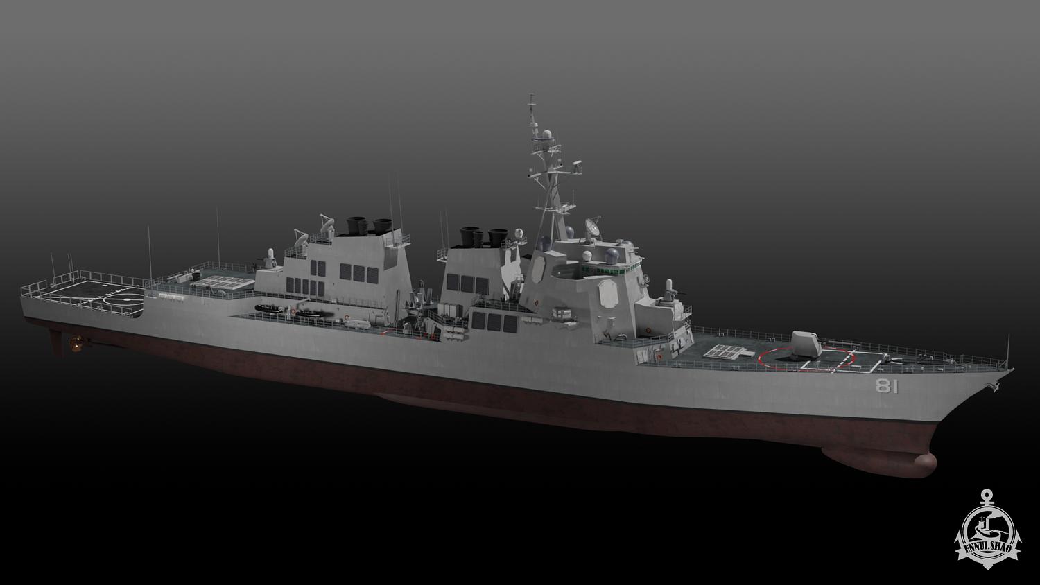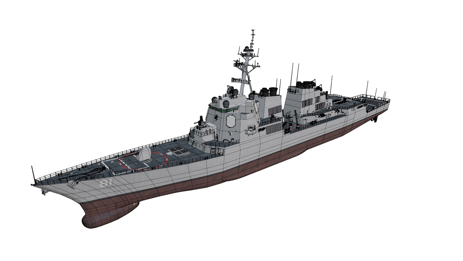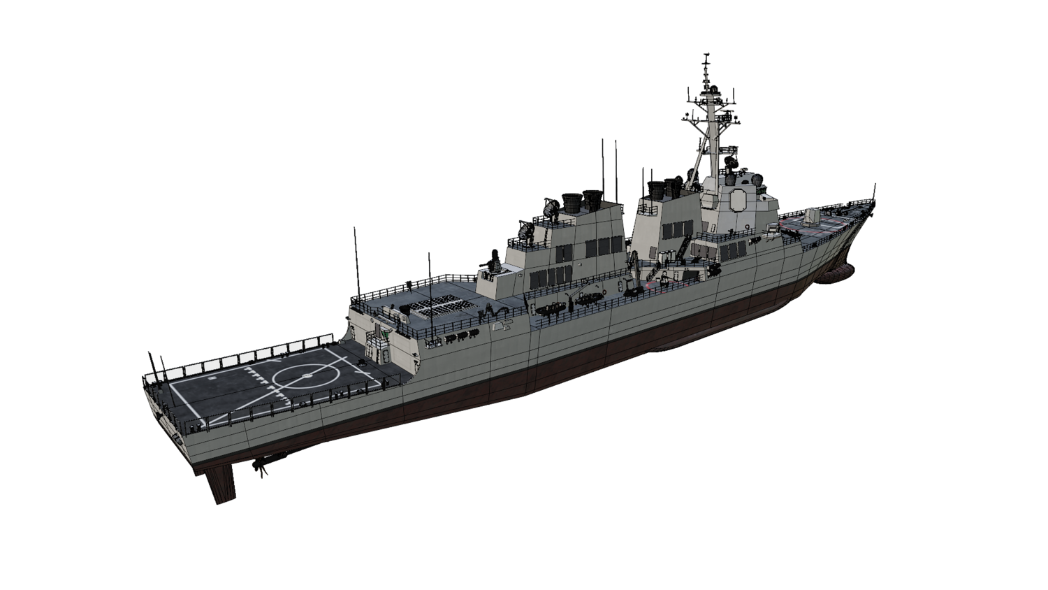Arleigh Burke class Flight IIA guide missile destroyer modeled with blender 3.3. 23 textures are used. OBJ and FBX supported. UV unwarpped. All objects are named.