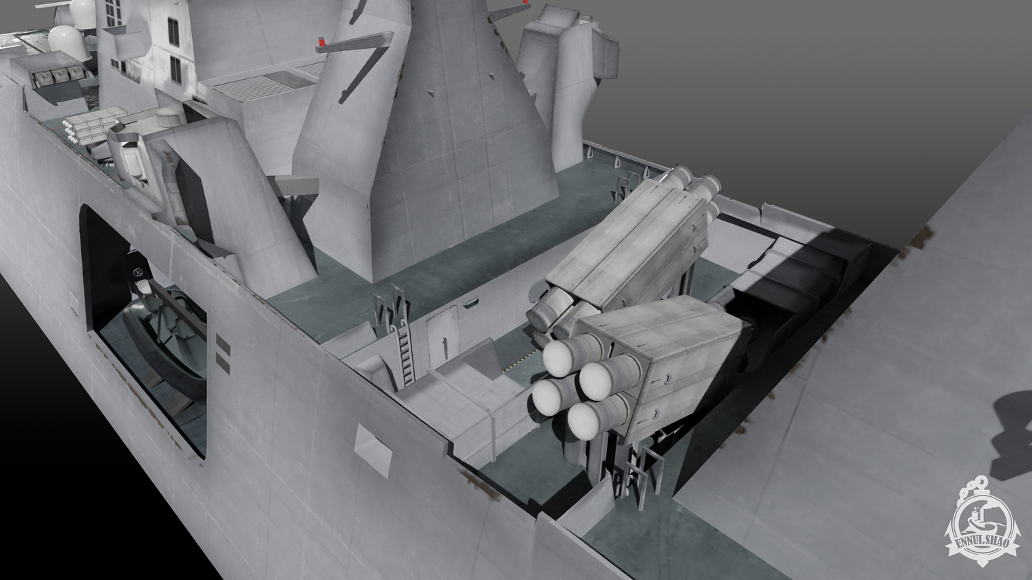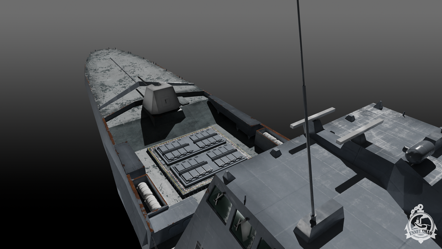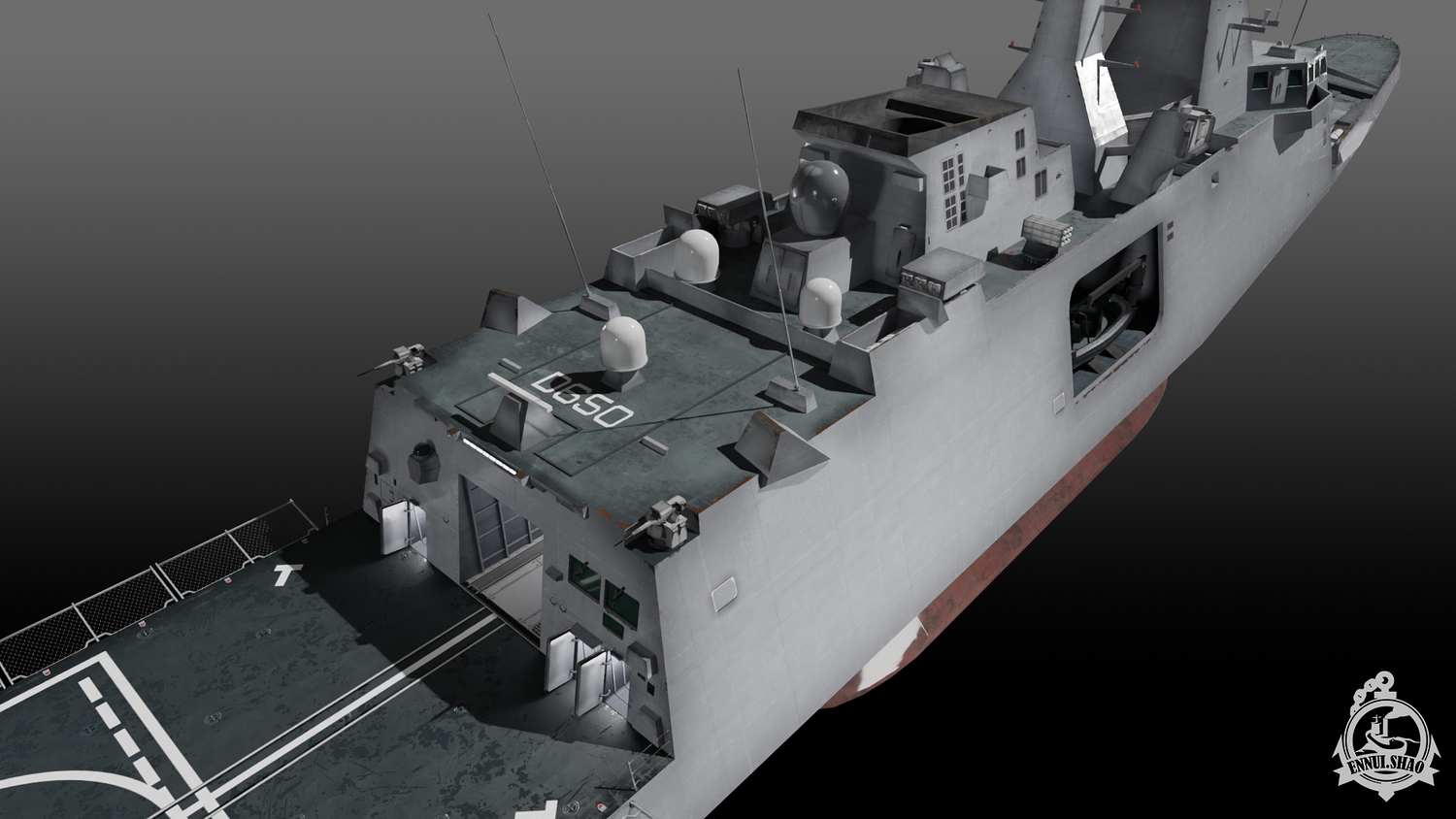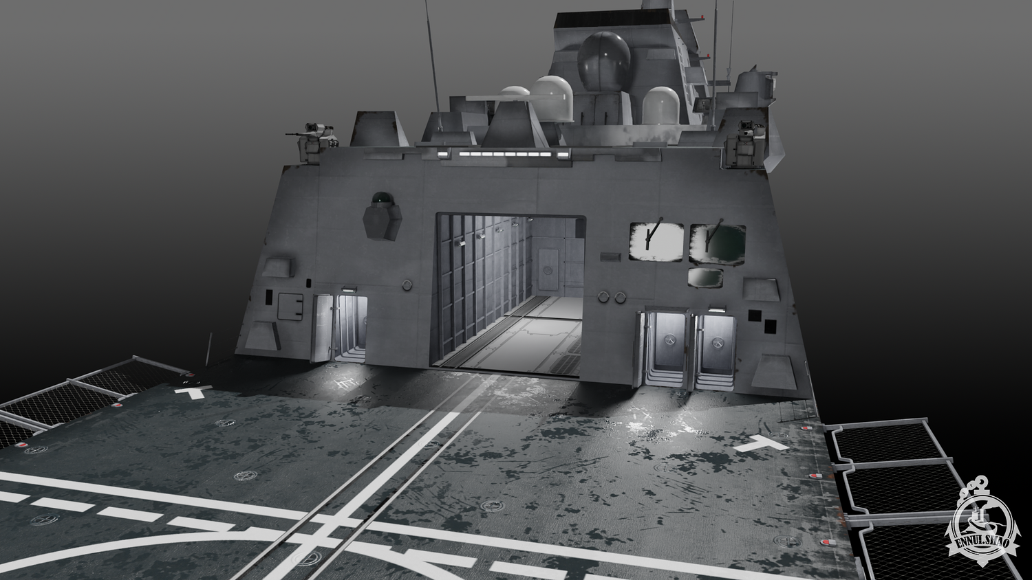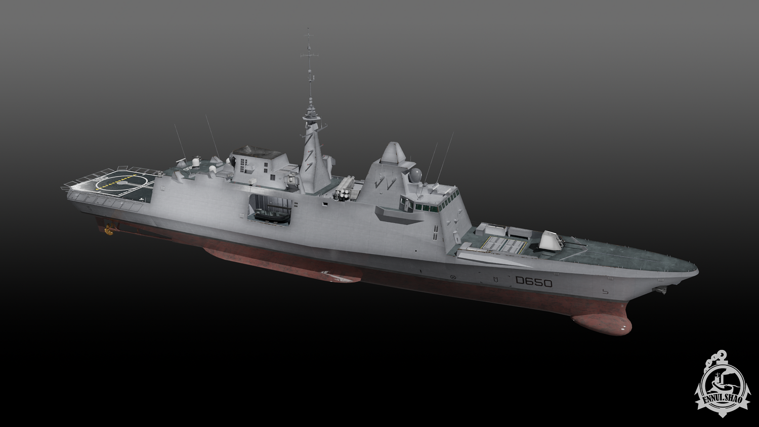 French navy FREMM class frigate FS Aquitaine. 14 textures used including three 8K main textures. PBR material. The model has 7 named objects and is game ready. Overlapped uvs are only for some repeated objects. There is a mask texture used for the rust edge effect. All textures has already contained in blend file. Also the texture pack is separately to be download.